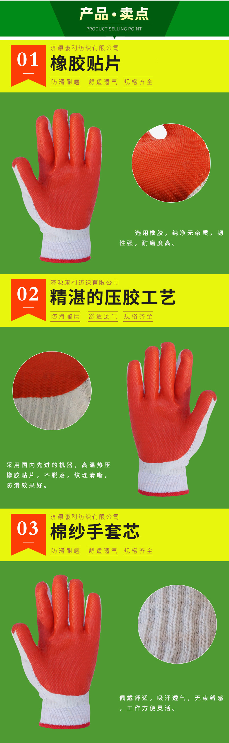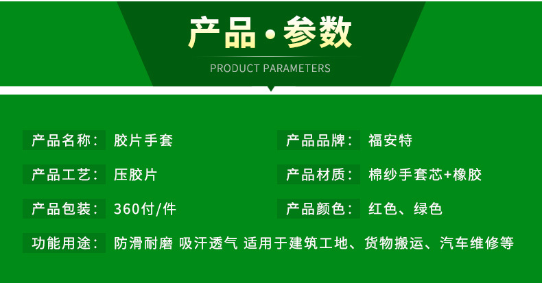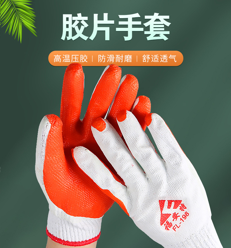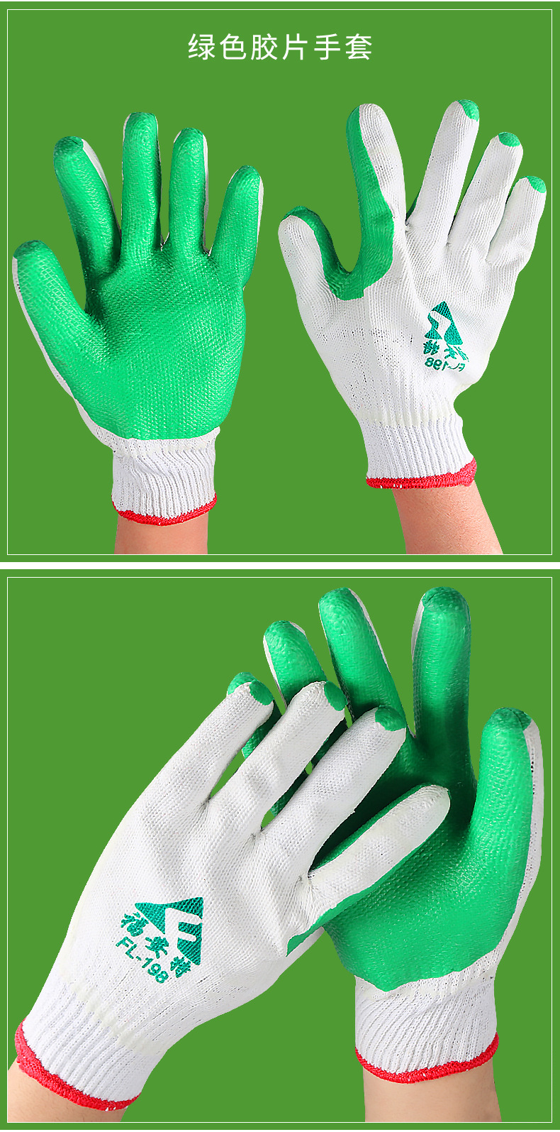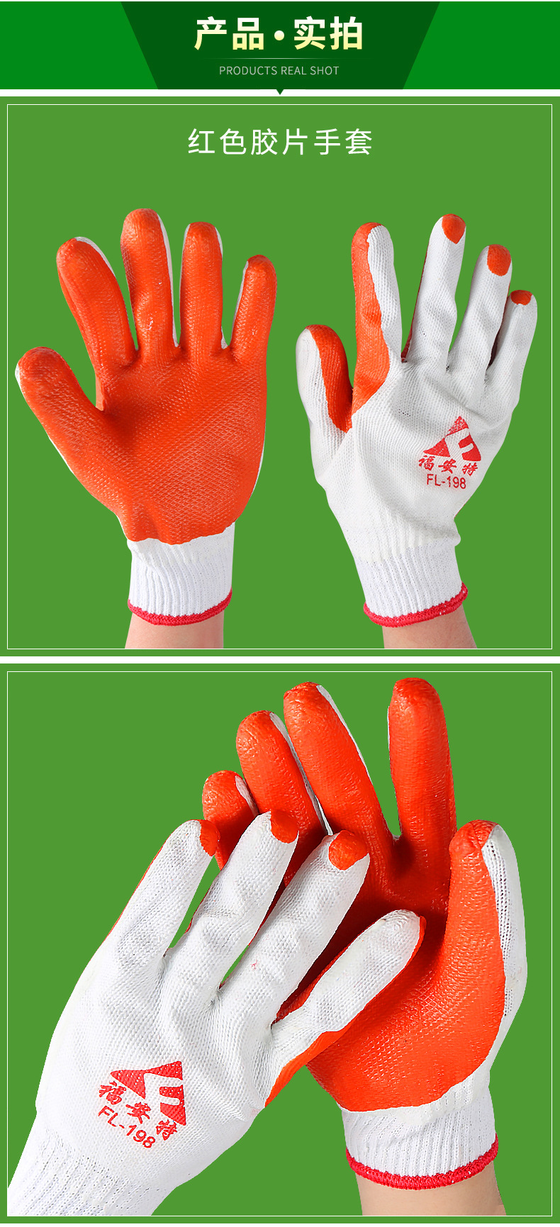 빨강 및 녹색 필름 장갑 도매 푸란테 내마모성 미끄럼 방지 보호 노동 보호 고무 함침 고무 장갑스토어 가기