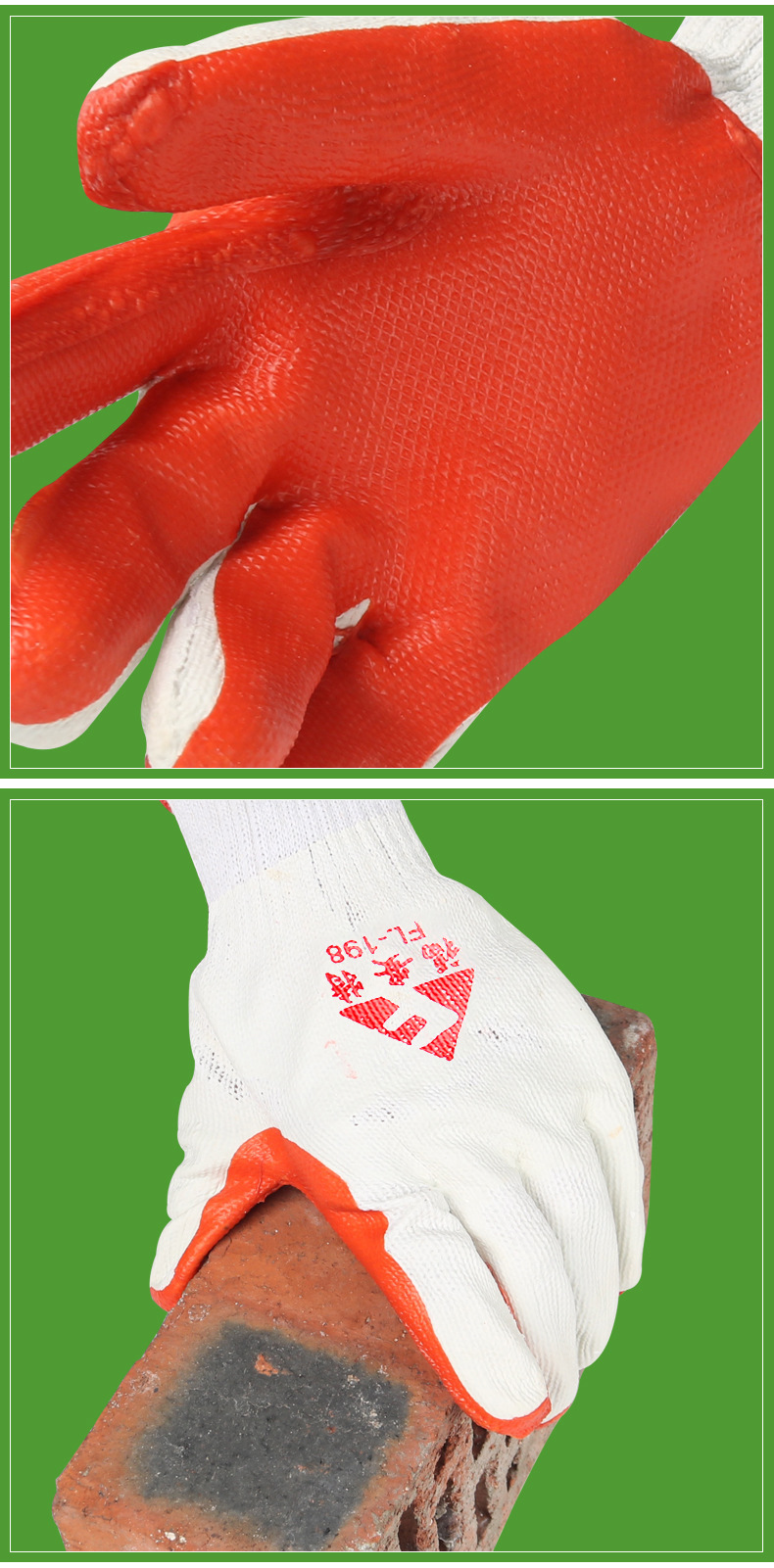 빨강 및 녹색 필름 장갑 도매 푸란테 내마모성 미끄럼 방지 보호 노동 보호 고무 함침 고무 장갑