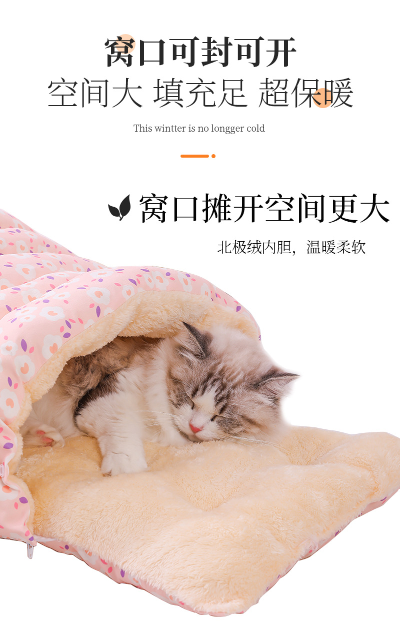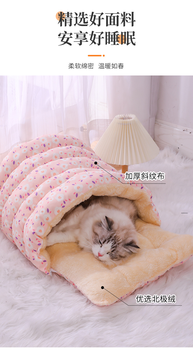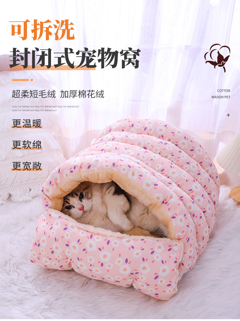 겨울 신상품 폐쇄 따뜻한 고양이 둥지 분리형 고양이 침낭 기모 두꺼운 따뜻한 개집 작은 개 둥지