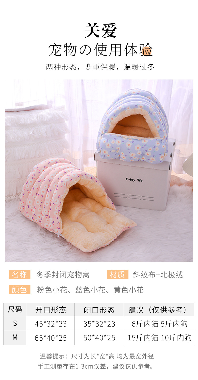겨울 신상품 폐쇄 따뜻한 고양이 둥지 분리형 고양이 침낭 기모 두꺼운 따뜻한 개집 작은 개 둥지스토어 가기