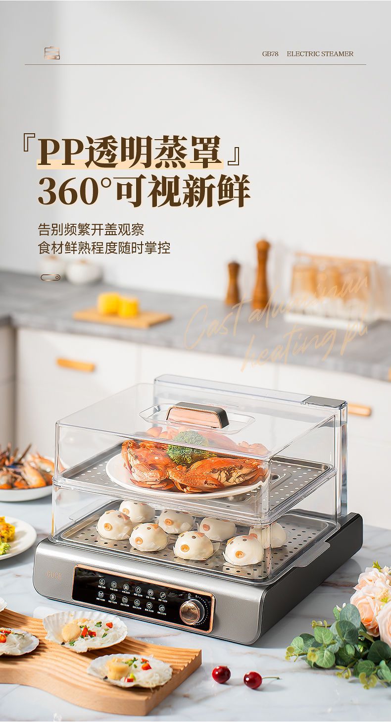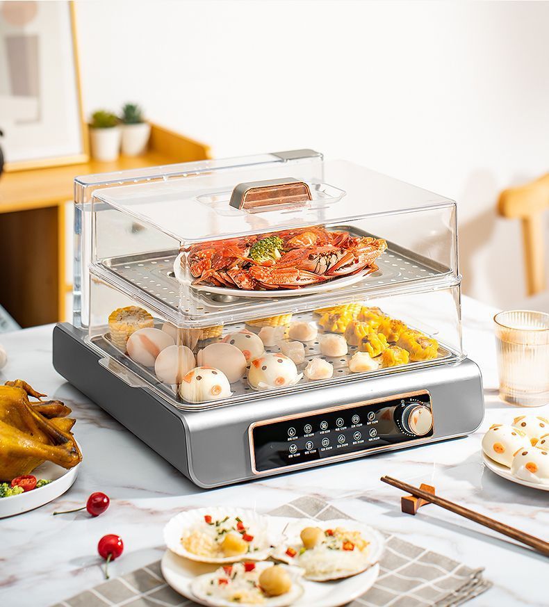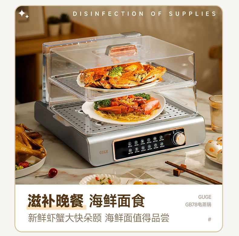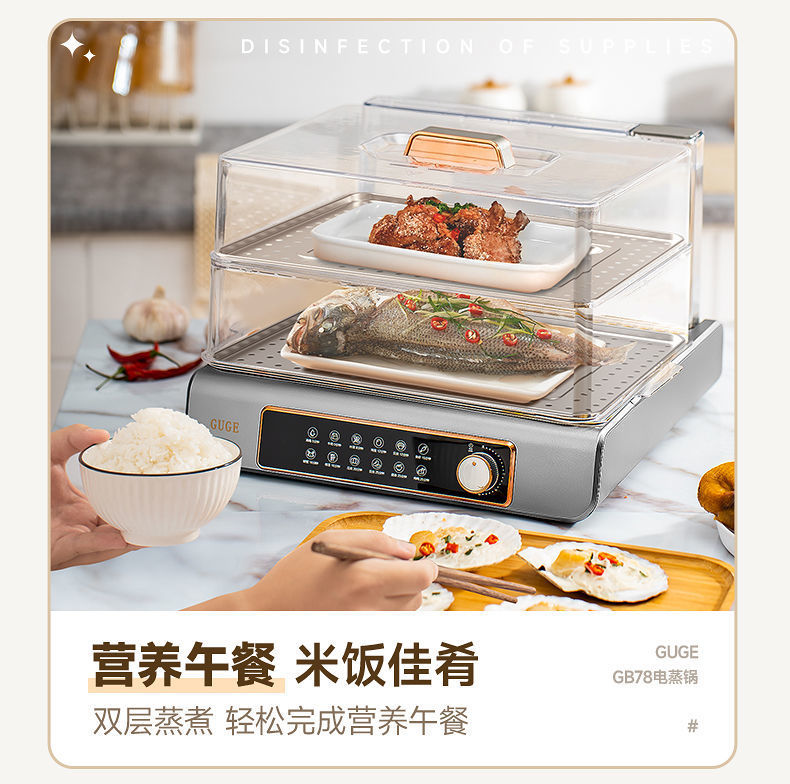 GUGE 전기 증기선 자동 가정용 다층 다기능 생선 증기선 지능형 대용량 스테인레스 스틸 전기 증기선
