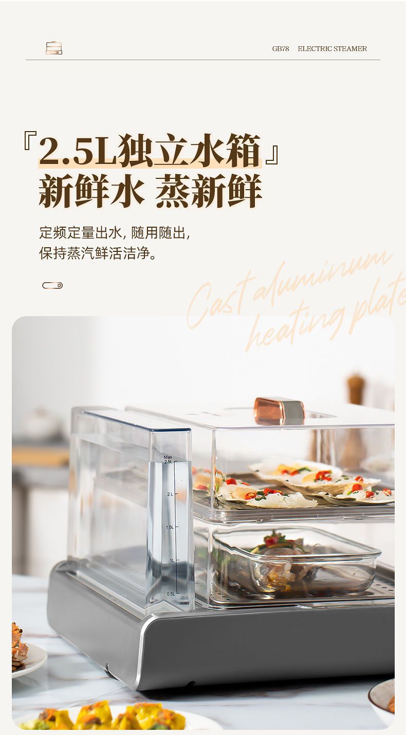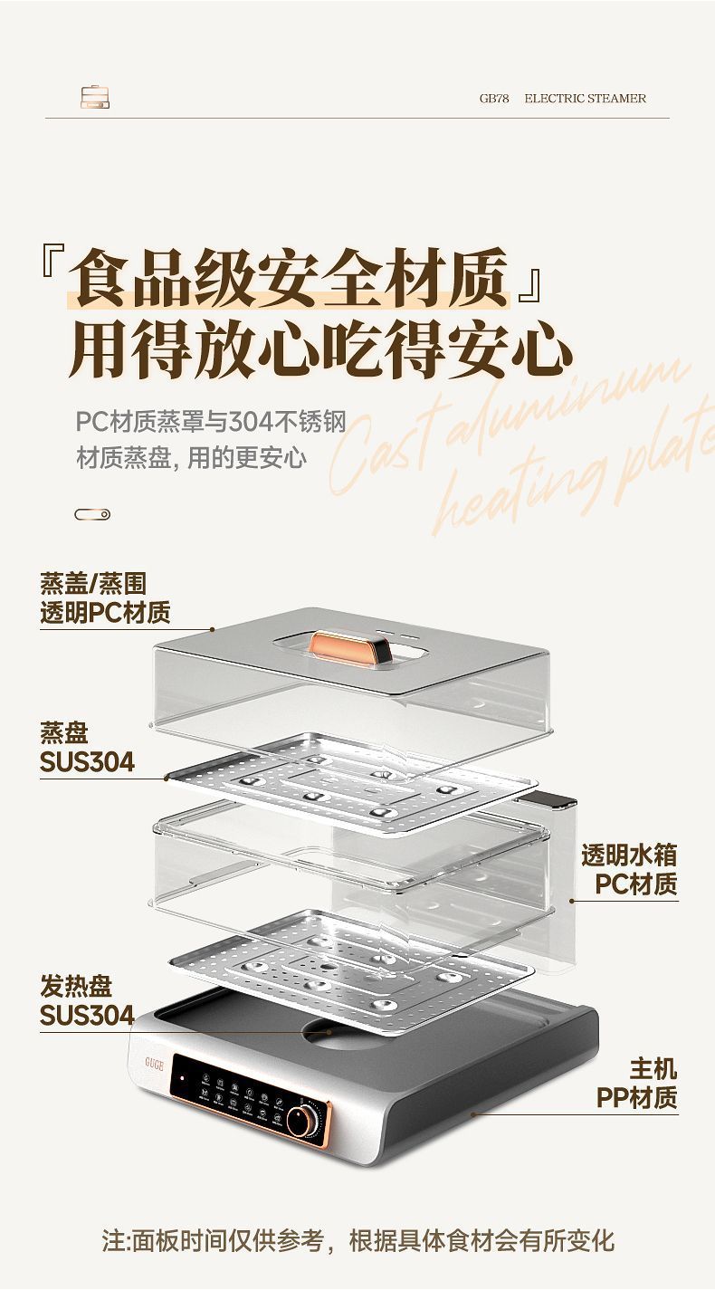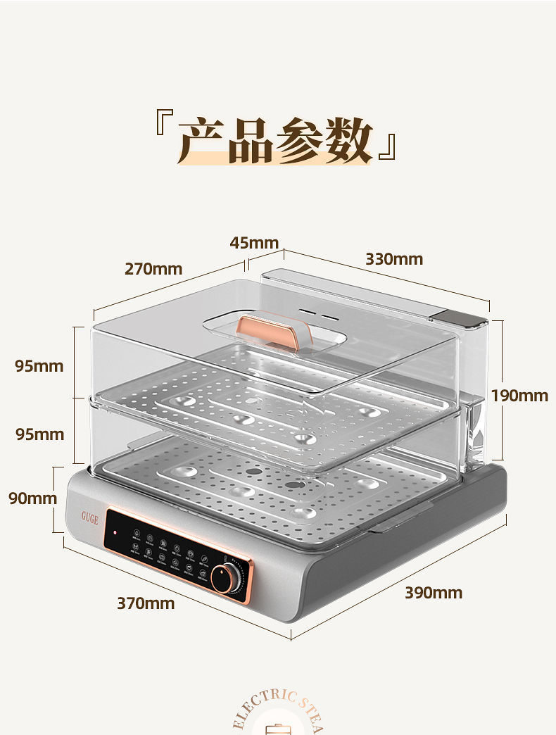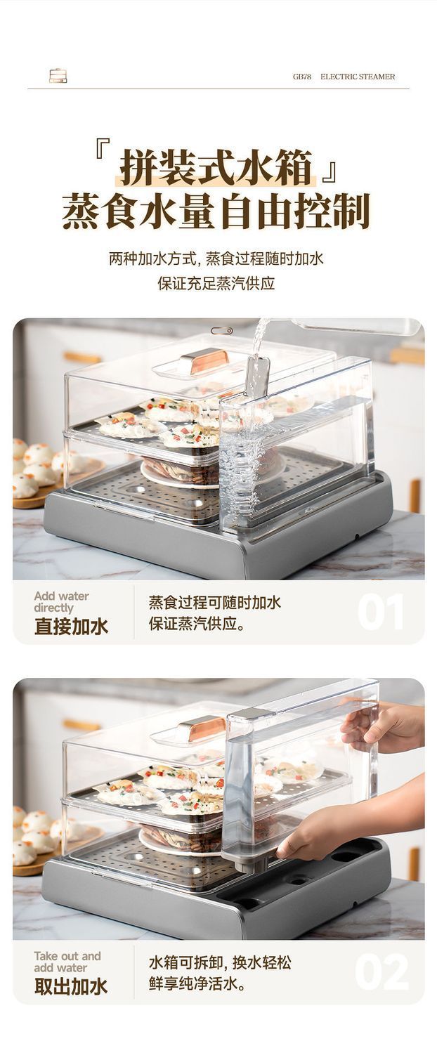 GUGE 전기 증기선 자동 가정용 다층 다기능 생선 증기선 지능형 대용량 스테인레스 스틸 전기 증기선