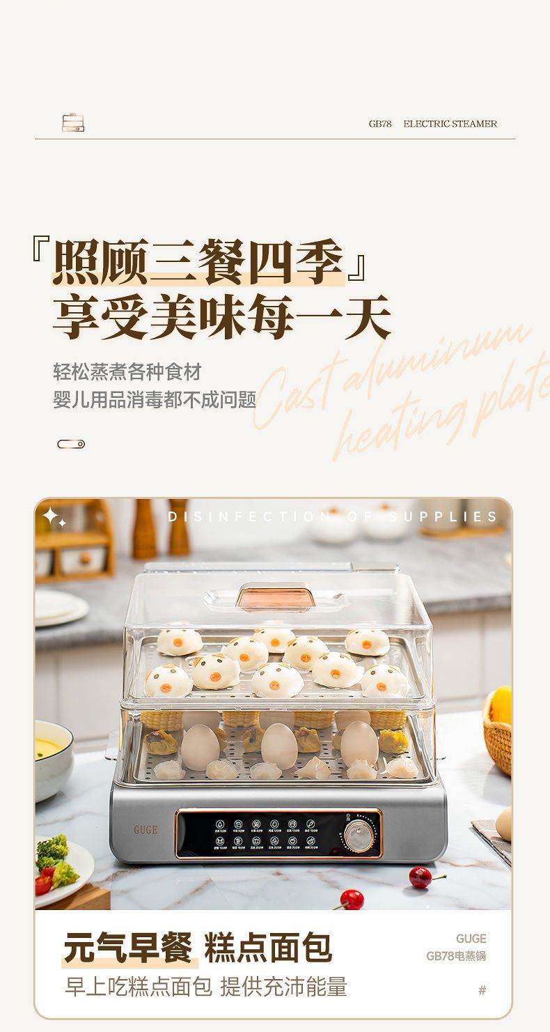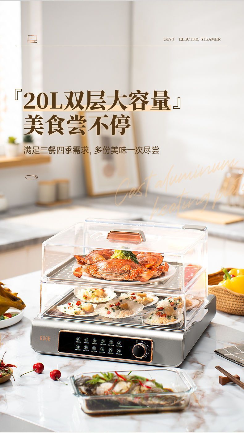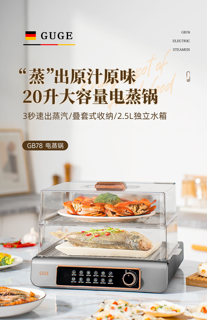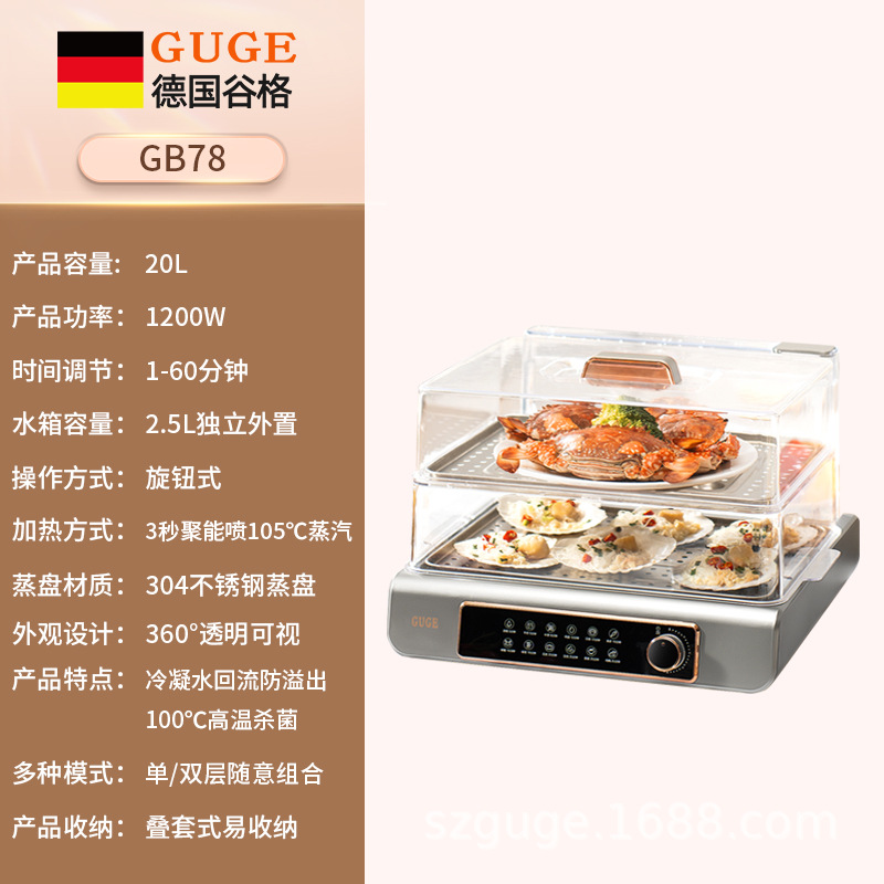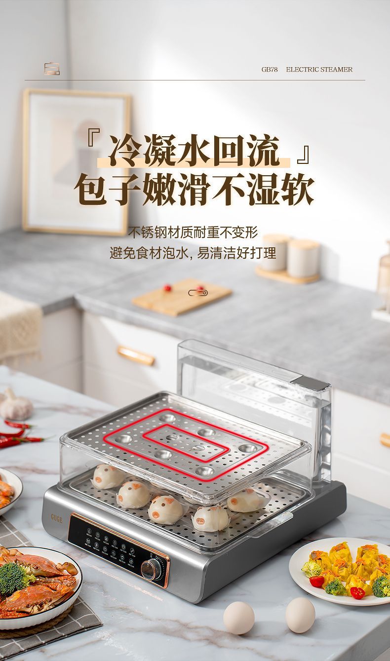 GUGE 전기 증기선 자동 가정용 다층 다기능 생선 증기선 지능형 대용량 스테인레스 스틸 전기 증기선스토어 가기