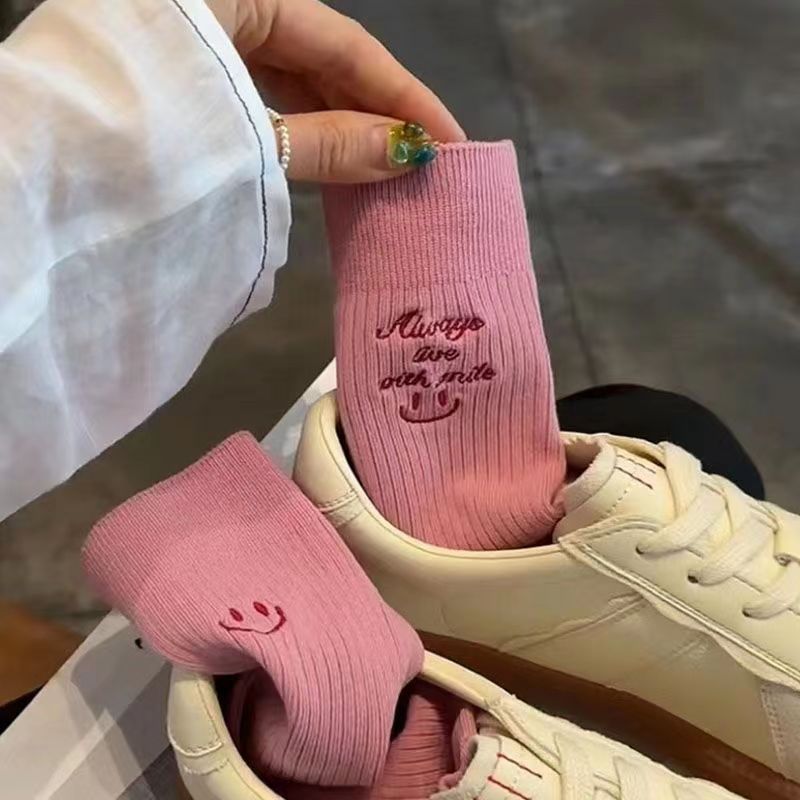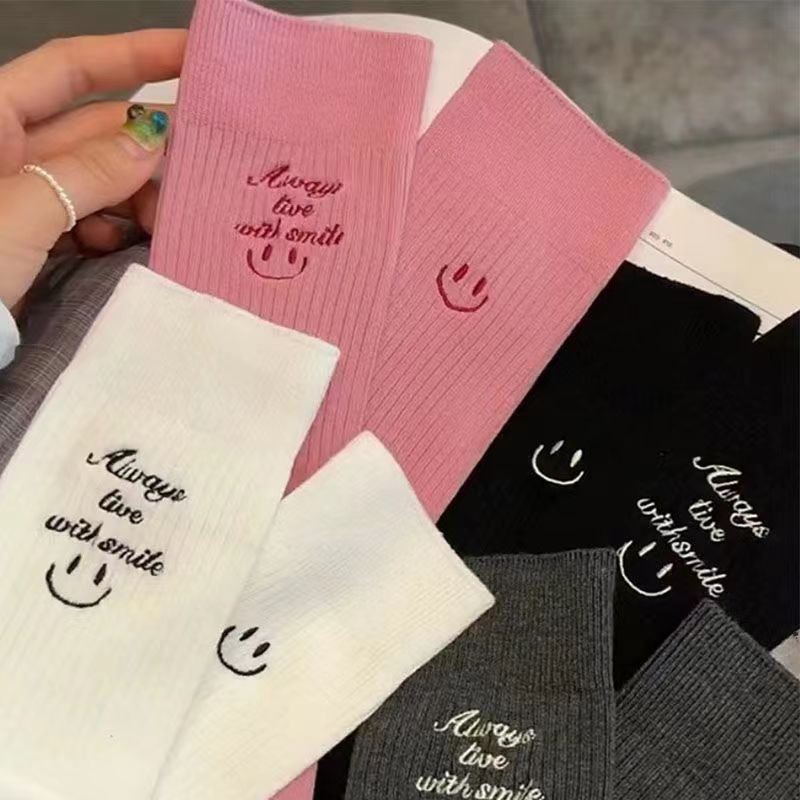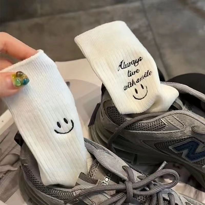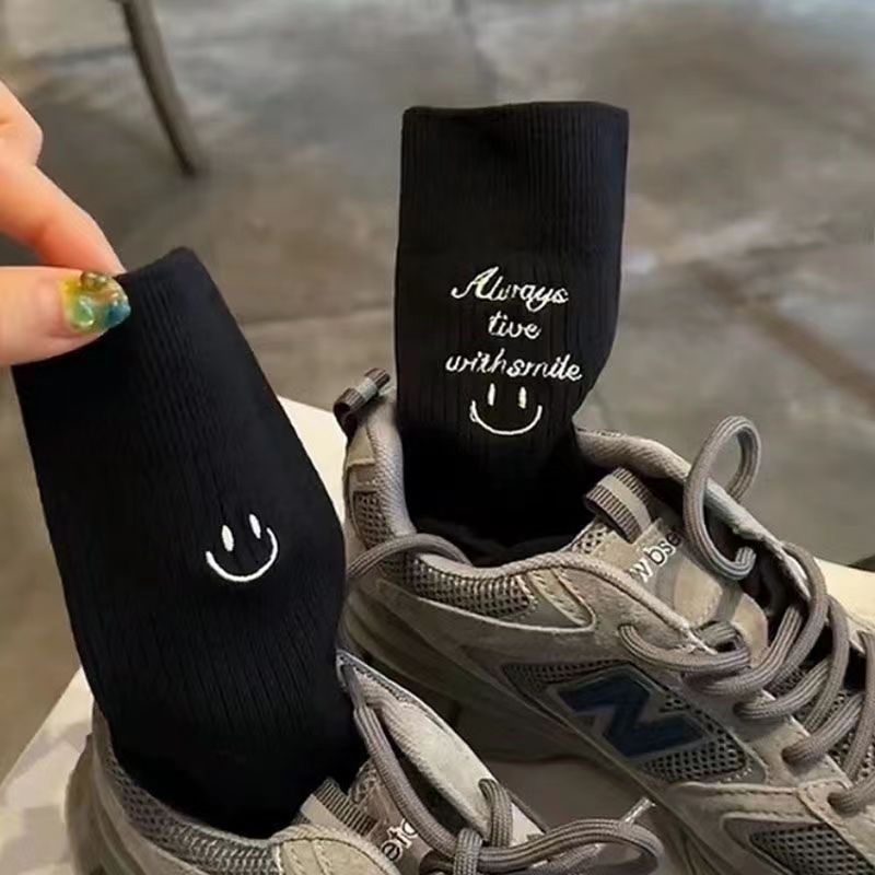 상어 바지와 AB 비대칭 웃는 얼굴 만다린 오리 양말 패션 스트리트 가을과 겨울 스타킹의 여성용 중간 배럴 겉옷스토어 가기