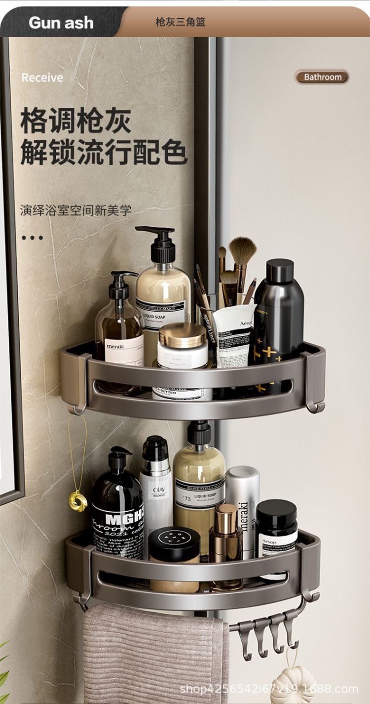 공간 알루미늄 욕실 메이크업 랙 보관 욕실 삼각형 코너 대용량 스토리지 랙스토어 가기
