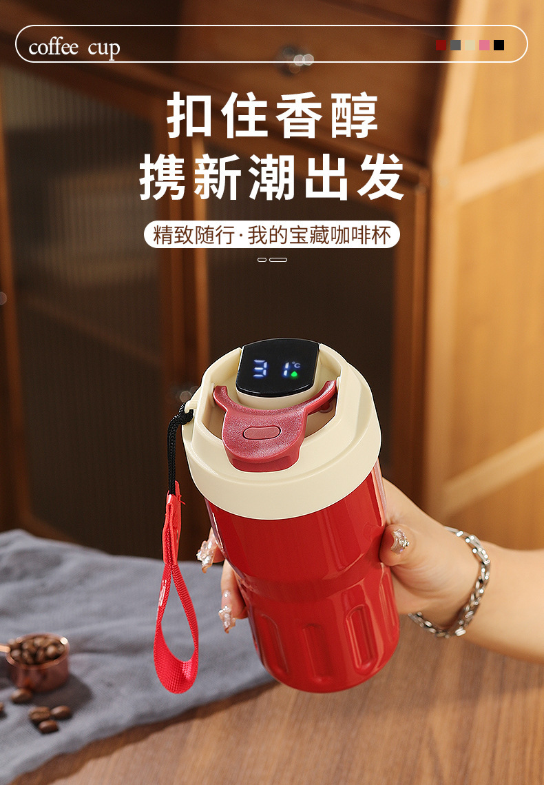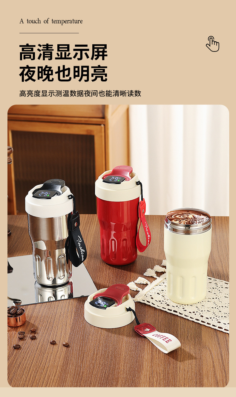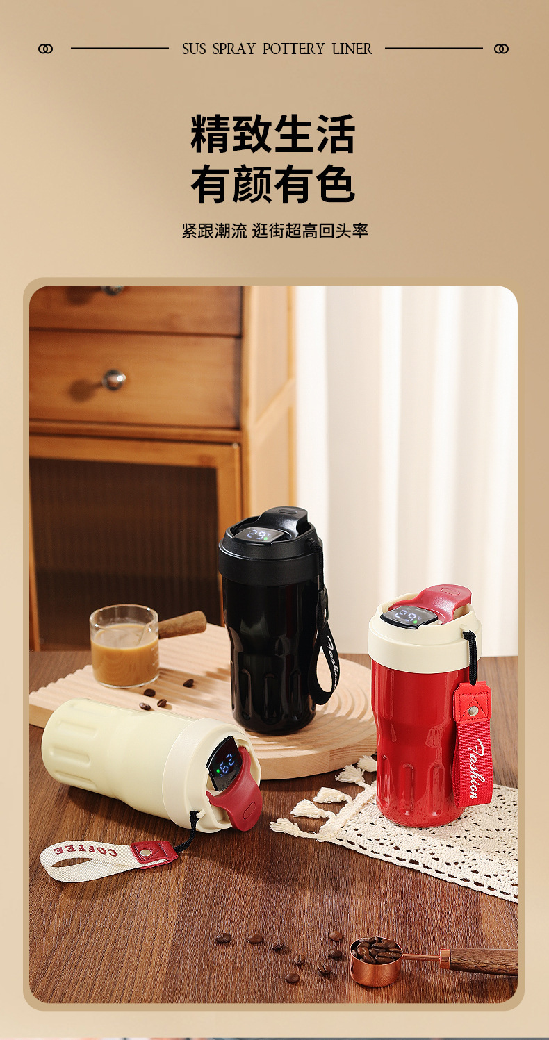 크리에이 티브 스테인레스 보온병 컵 지능형 온도 측정 커피 컵 국경 간 비즈니스 선물 컵 커스텀 핸들 휴대용 컵스토어 가기