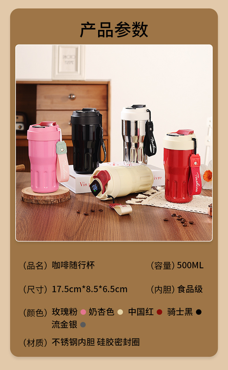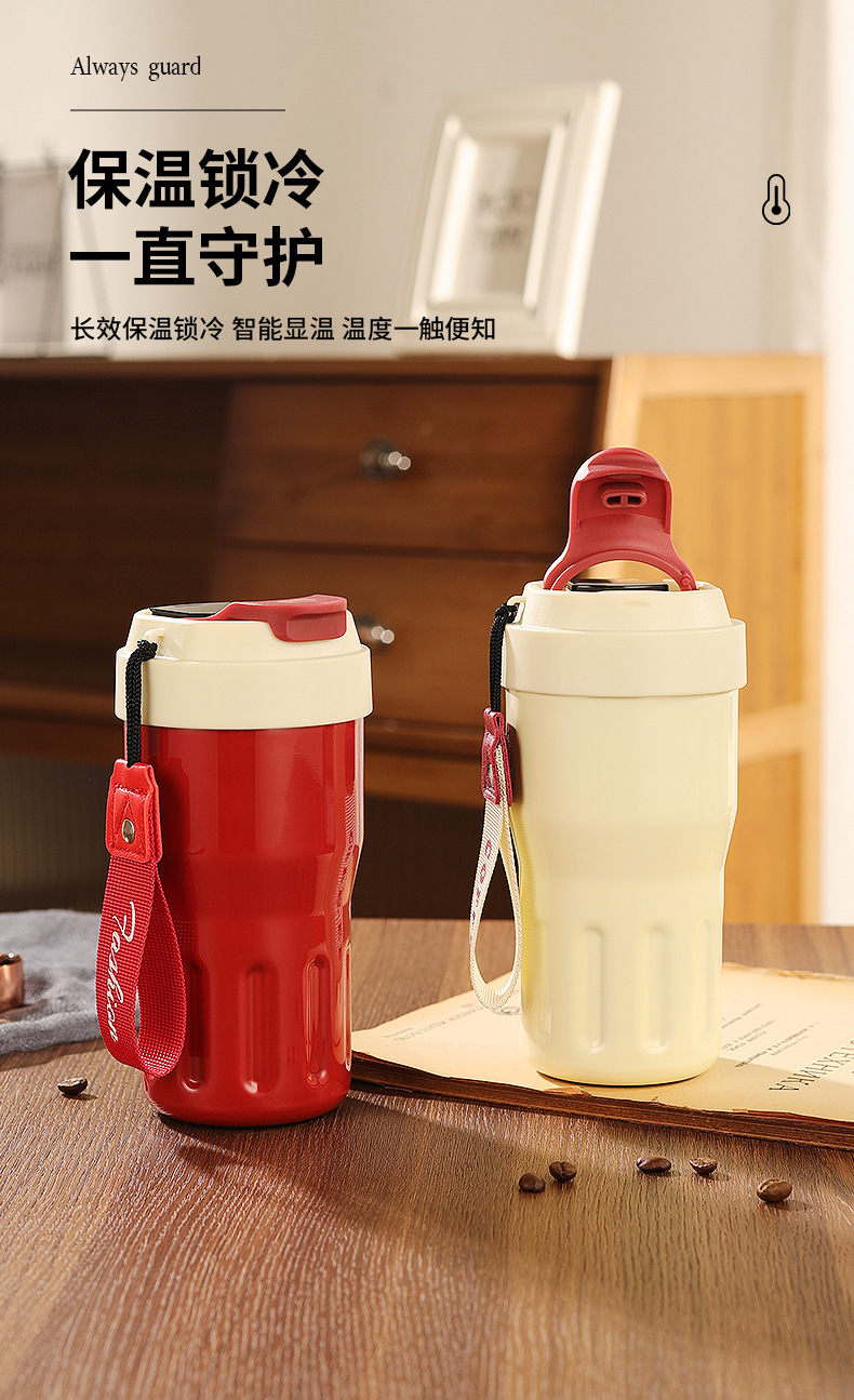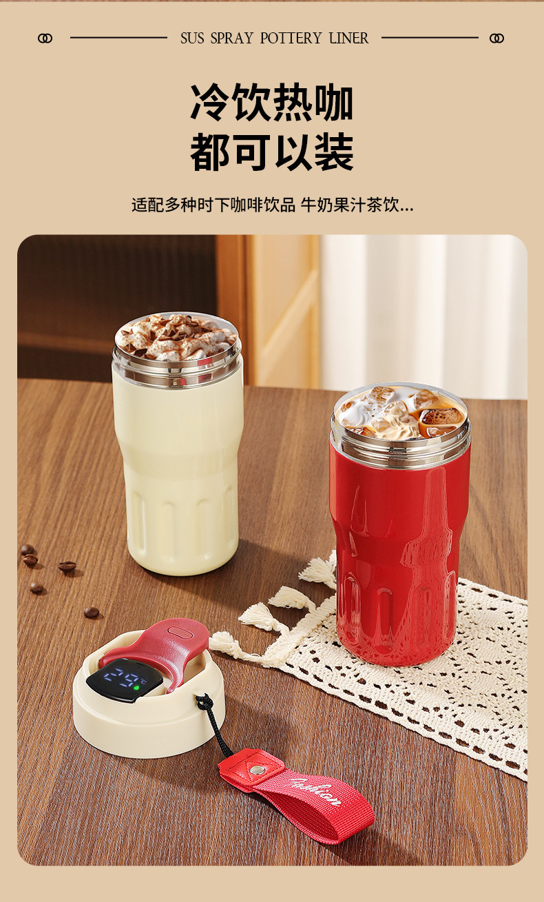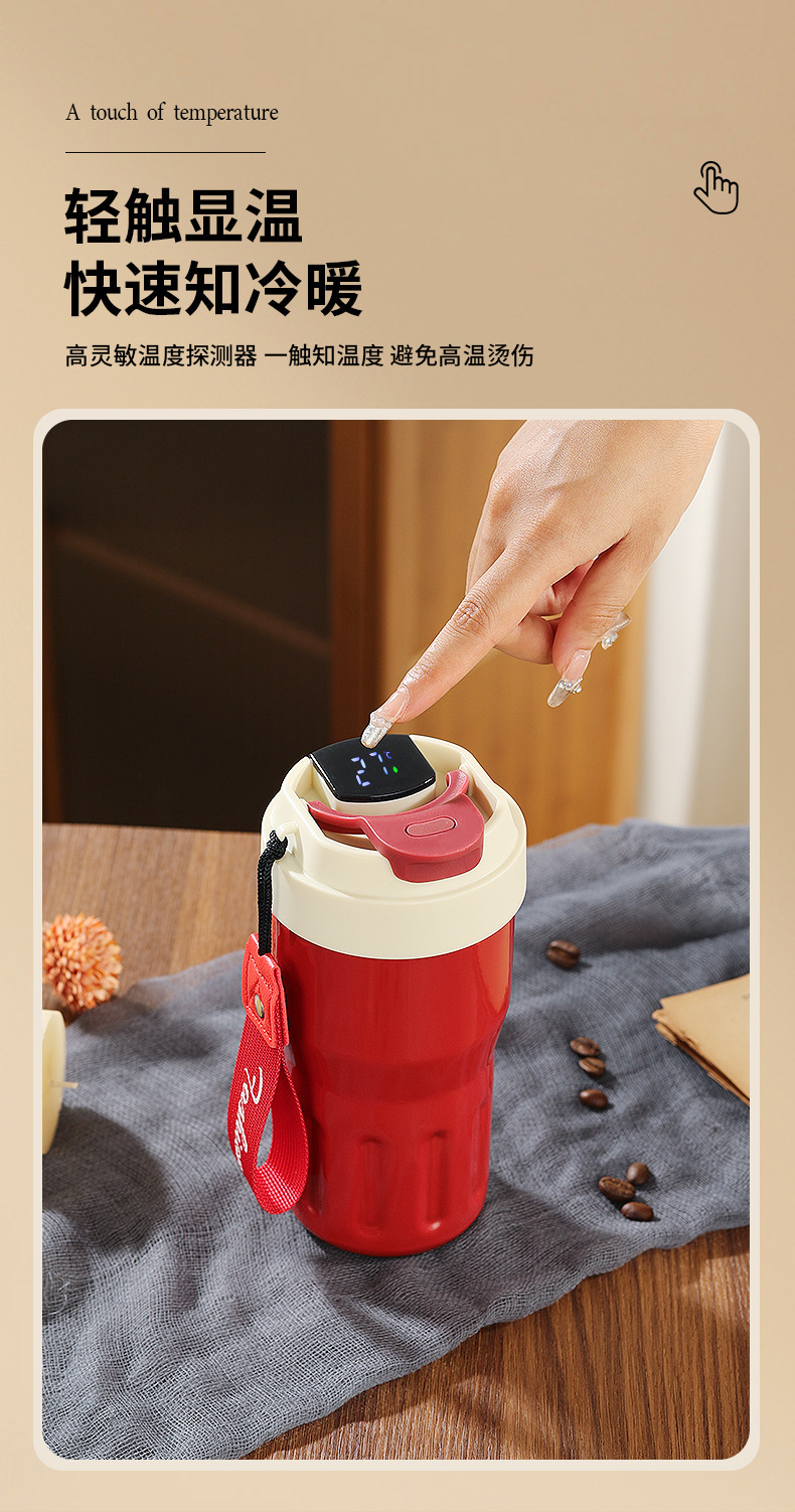 크리에이 티브 스테인레스 보온병 컵 지능형 온도 측정 커피 컵 국경 간 비즈니스 선물 컵 커스텀 핸들 휴대용 컵스토어 가기