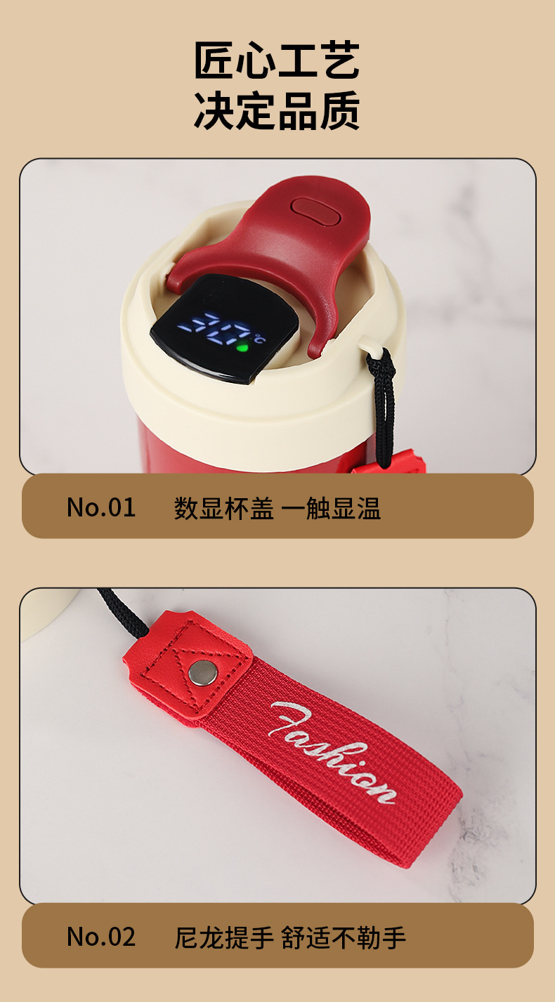 크리에이 티브 스테인레스 보온병 컵 지능형 온도 측정 커피 컵 국경 간 비즈니스 선물 컵 커스텀 핸들 휴대용 컵