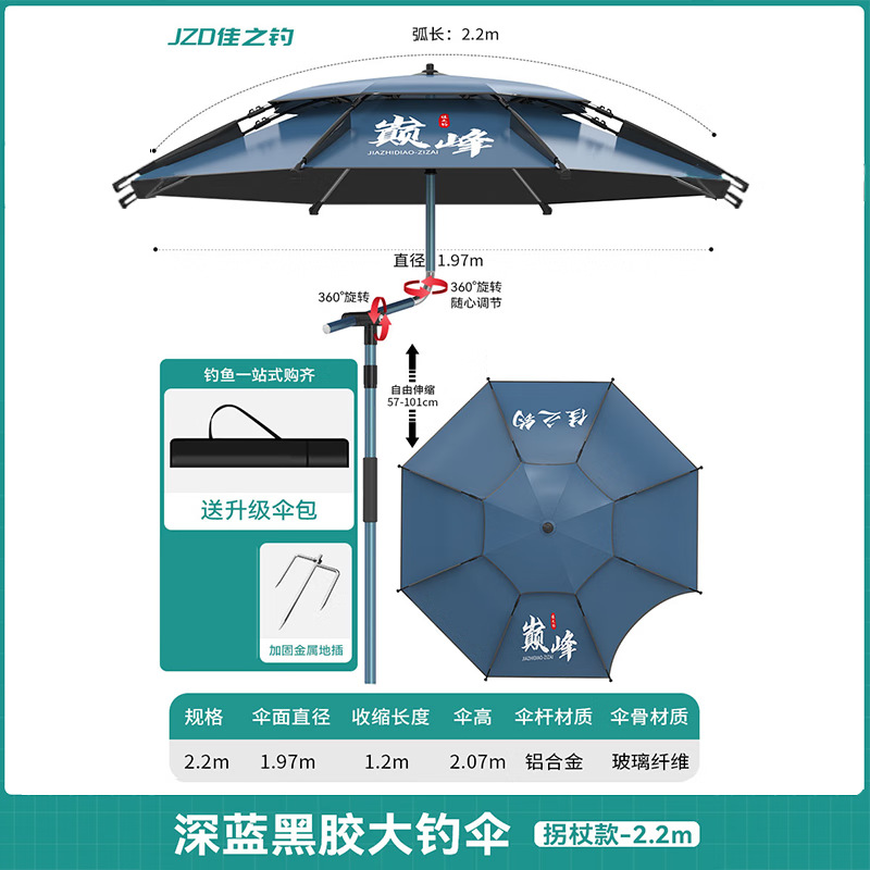 • [목발 검은 고무 우산 더블 360 조정] 전체로드 알루미늄 합금 2.2m-다크 블루