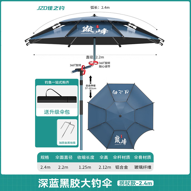• [목발 검은 고무 우산 더블 360 조정] 전체로드 알루미늄 합금 2.4m-다크 블루