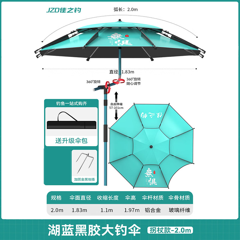 • [목발 검은 고무 우산 더블 360 조정] 전체로드 스테인레스 스틸 2.0m-레이크 블루