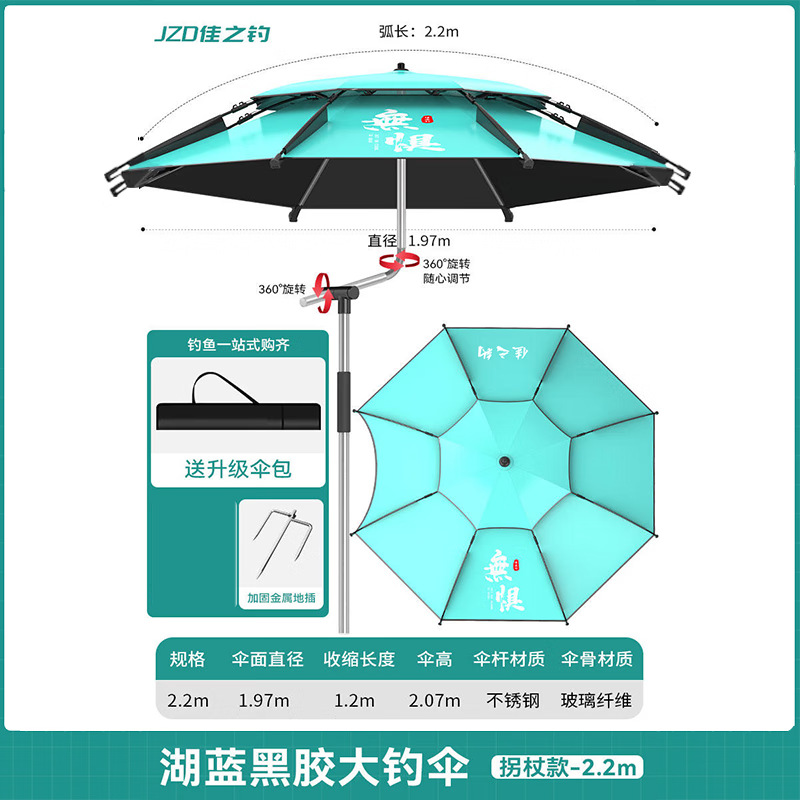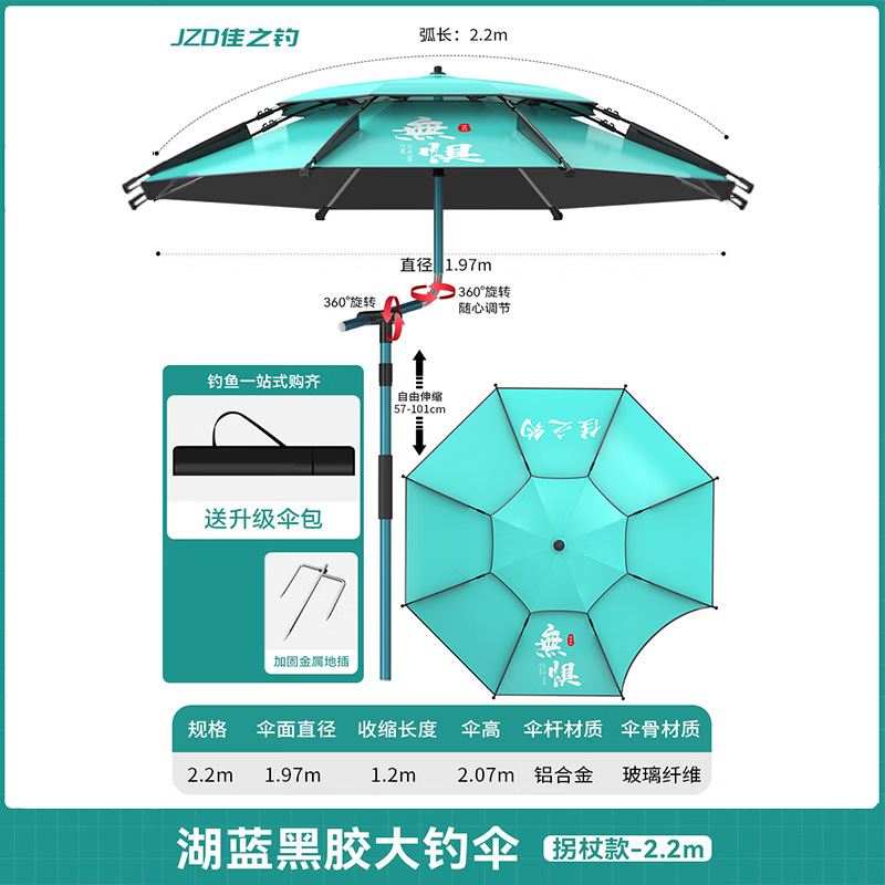 • [목발 검은 고무 우산 더블 360 조정] 전체로드 스테인레스 스틸 2.2m-레이크 블루