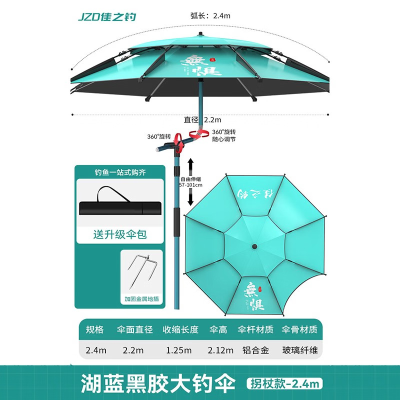 • [목발 검은 고무 우산 더블 360 조정] 전체로드 스테인레스 스틸 2.4m-레이크 블루