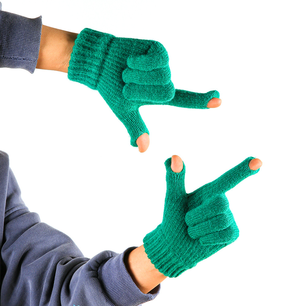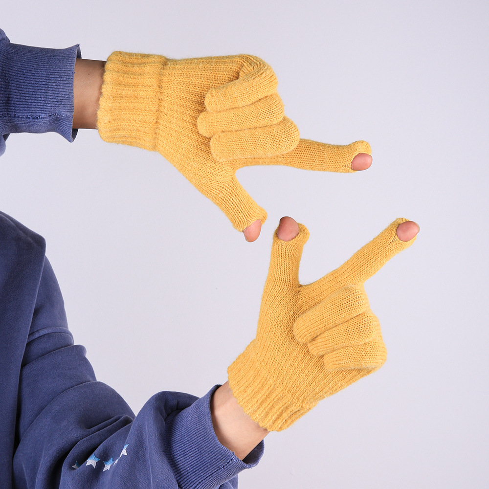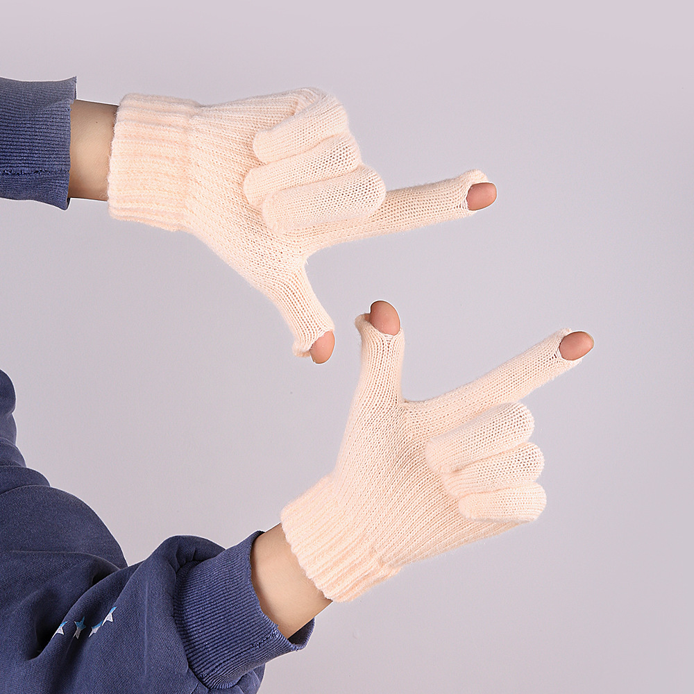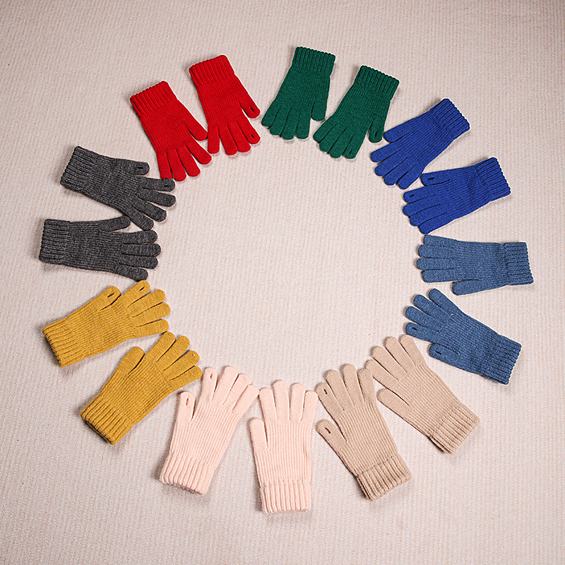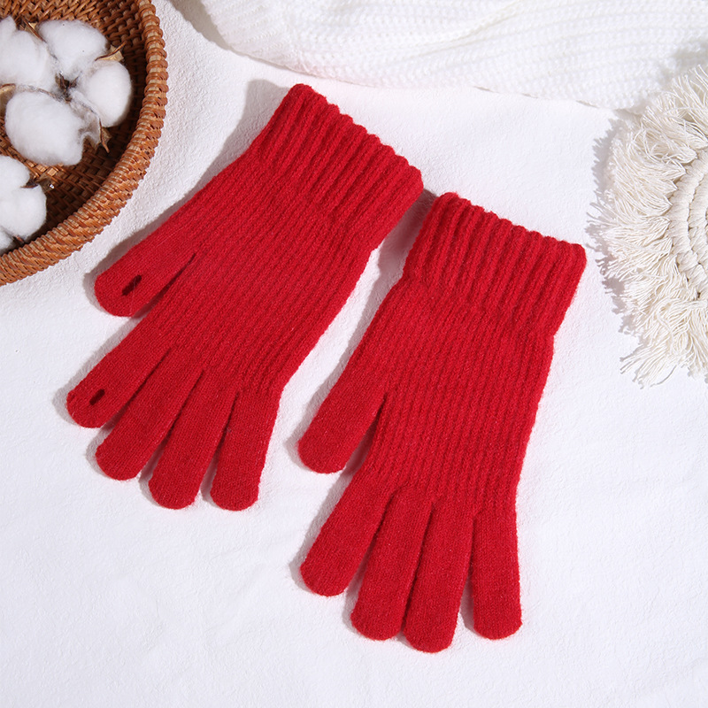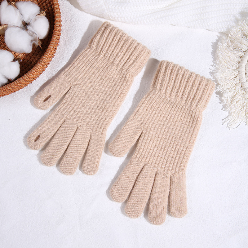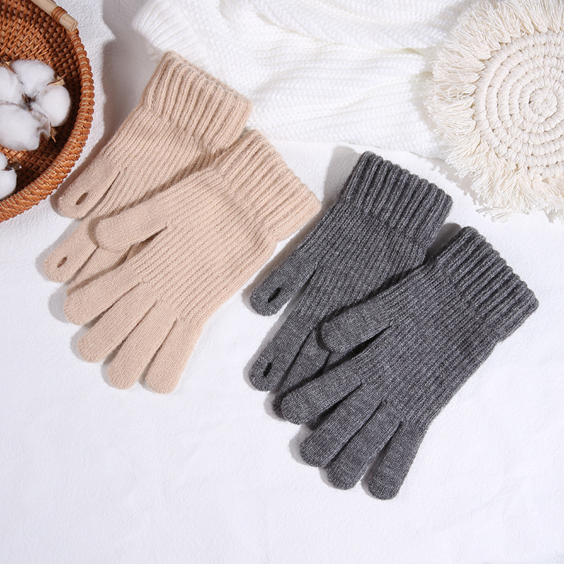 따뜻한 장갑 여자의 겨울 도매 니트 터치 스크린 두꺼운 기모 울 다섯 손가락 방한 학생 장갑