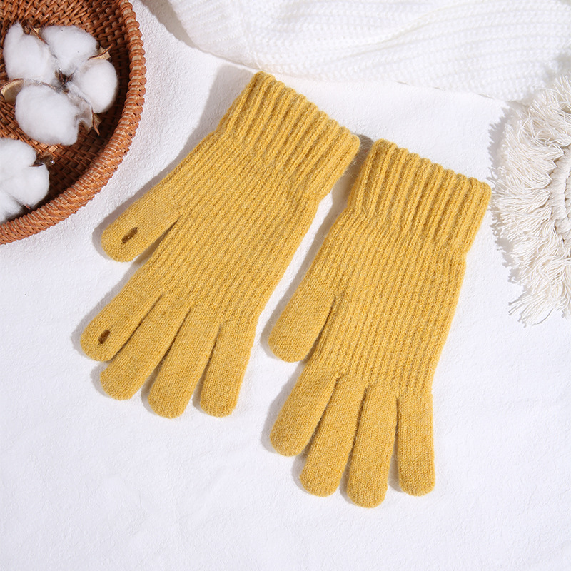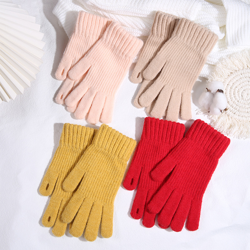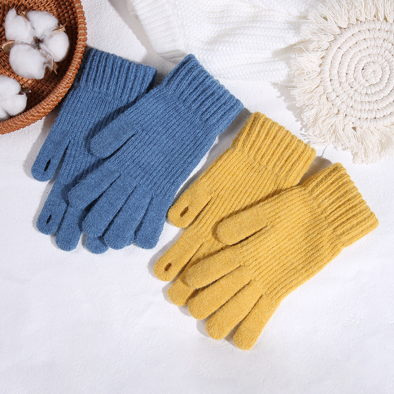 따뜻한 장갑 여자의 겨울 도매 니트 터치 스크린 두꺼운 기모 울 다섯 손가락 방한 학생 장갑스토어 가기