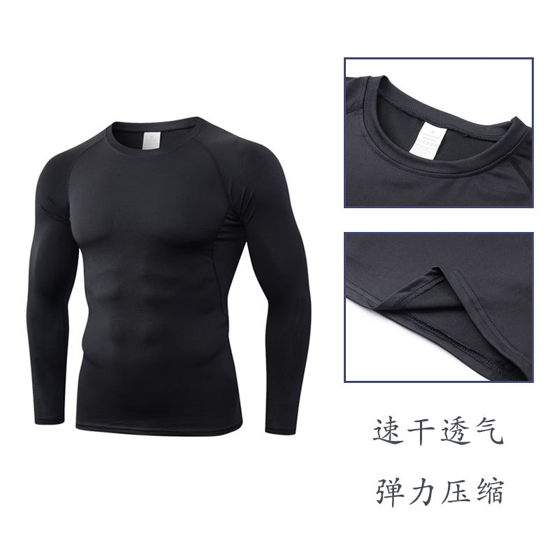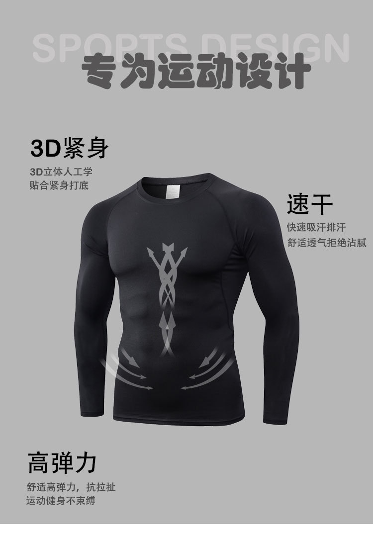 남성용 흑백 클래식 스포츠 긴팔 피트니스 아웃도어 러닝 흡습속건 타이트핏 고탄성 슬림핏 상의