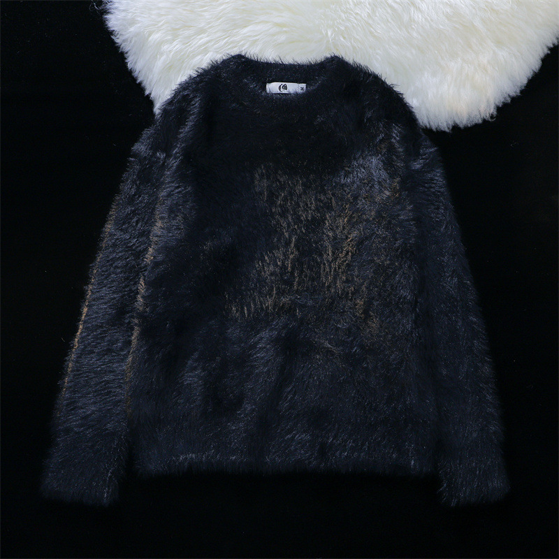 단색 따뜻한 니트 스웨터 크루넥 스웨터 남자의 가을과 겨울 하라주쿠 스타일 느슨한 트렌디 브랜드 커플 의류 라인스토어 가기