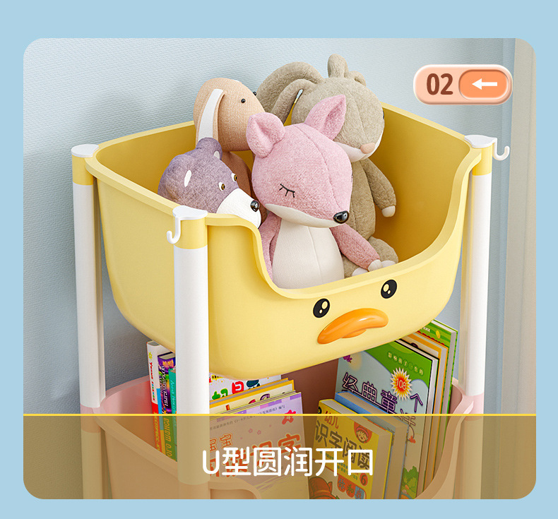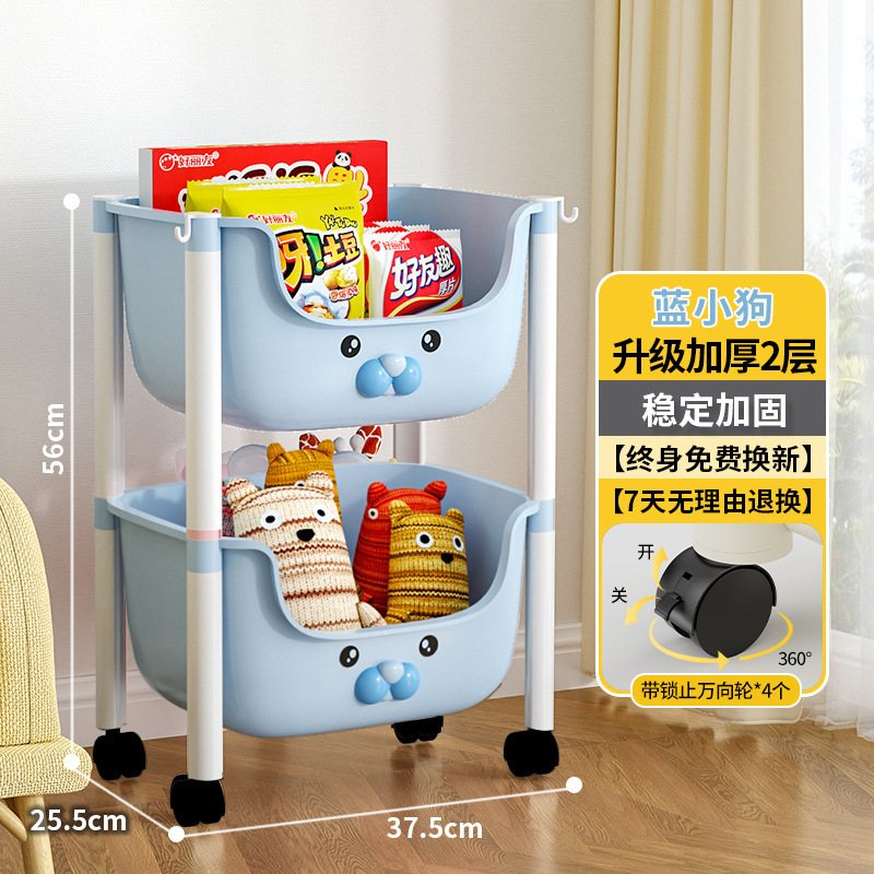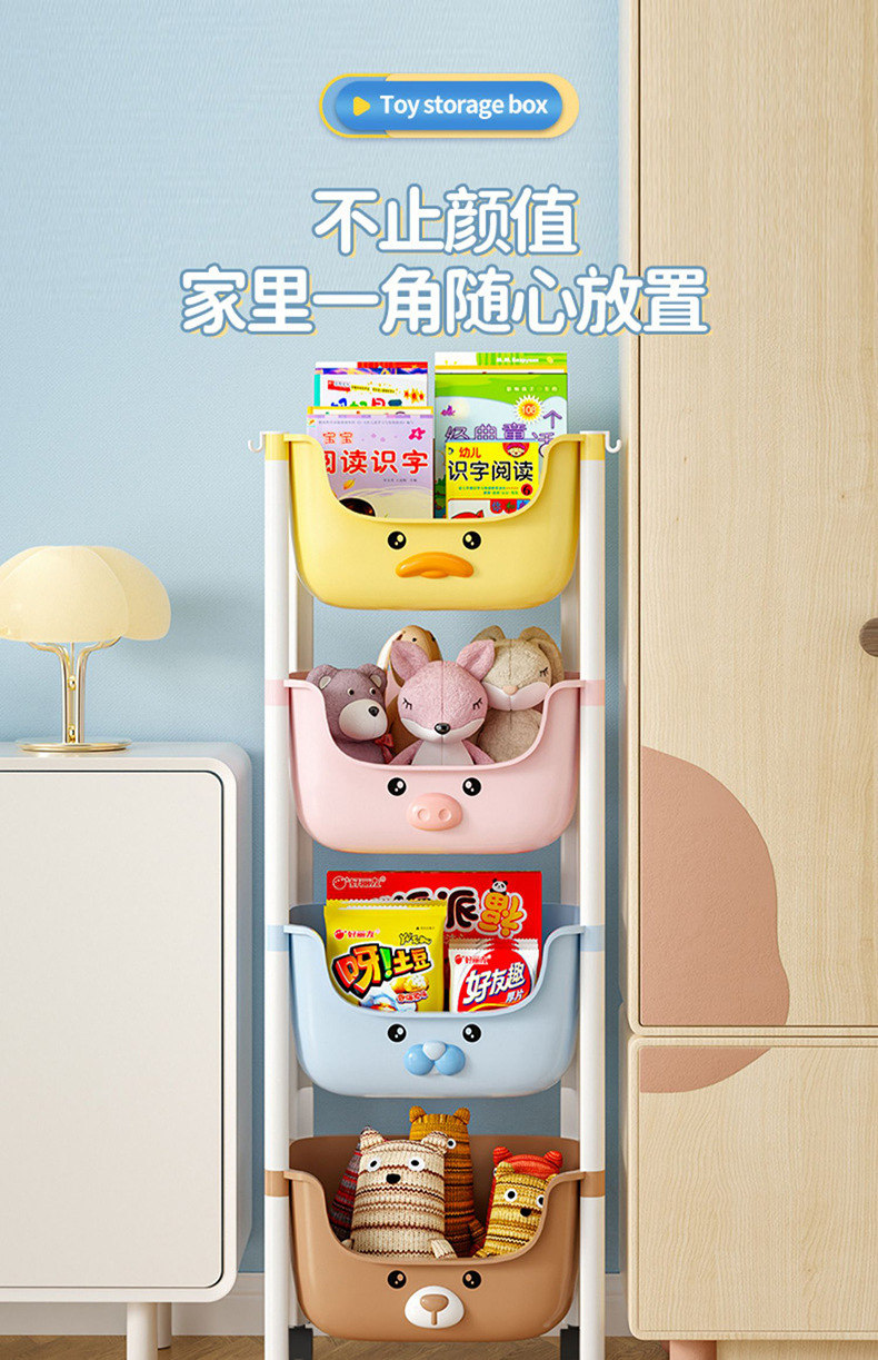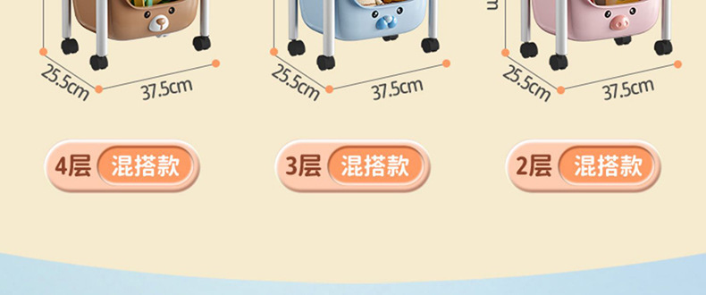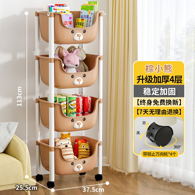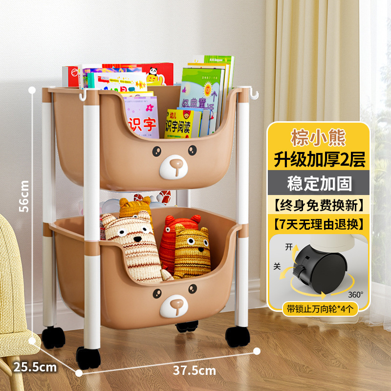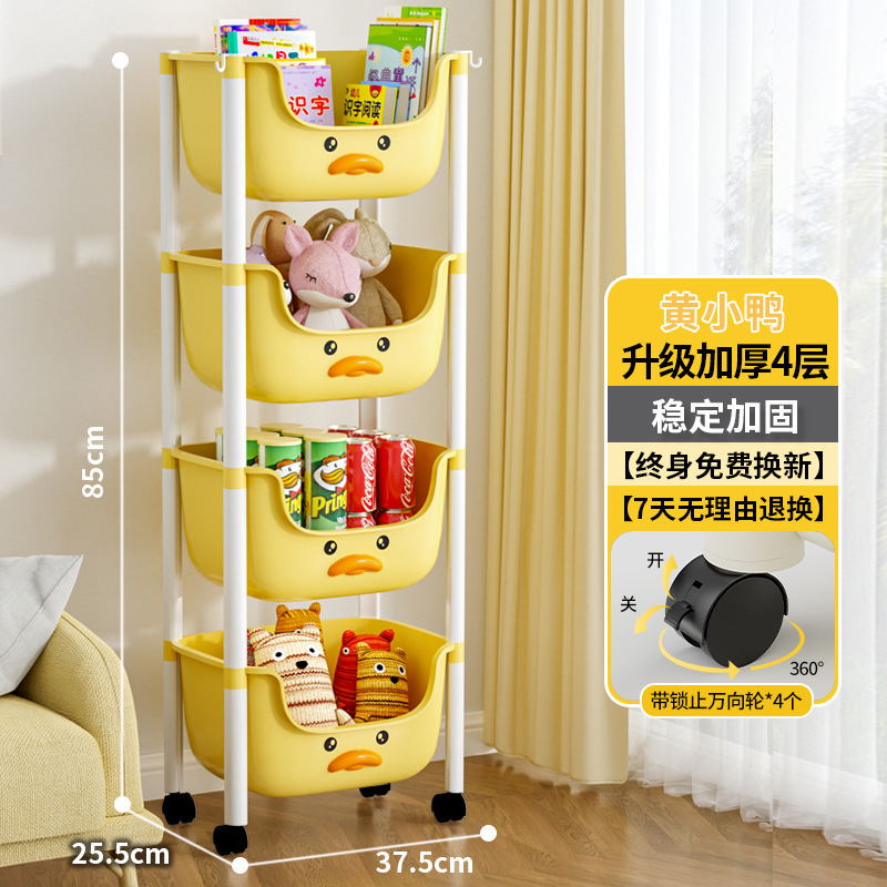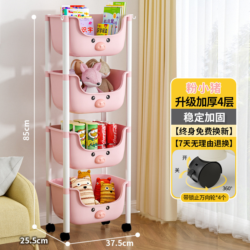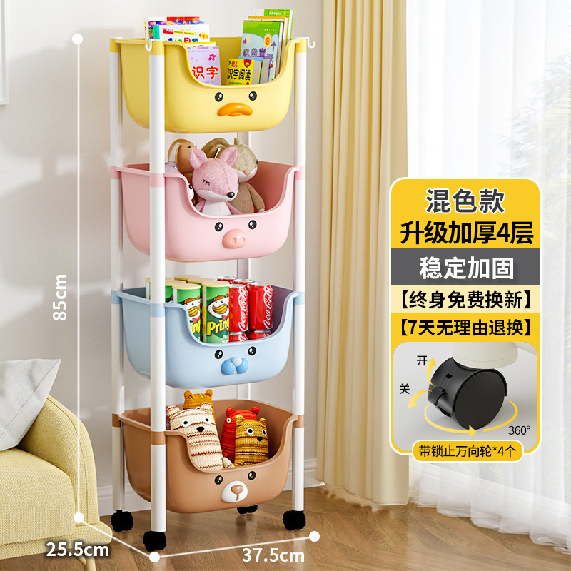 Qiao Jie 소형 트롤리 수납 선반, 어린이 장난감 보관함, 가정용 책꽂이, 그림책 선반, 이동식 다층 정리 선반스토어 가기