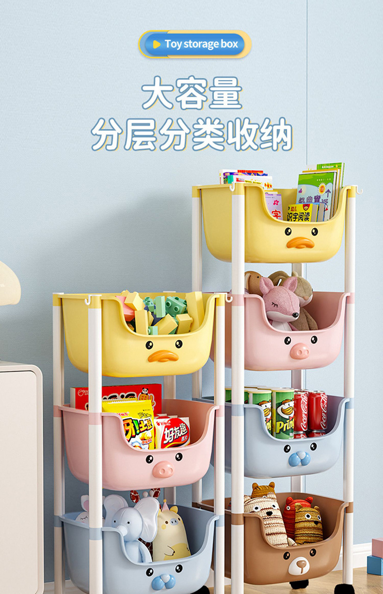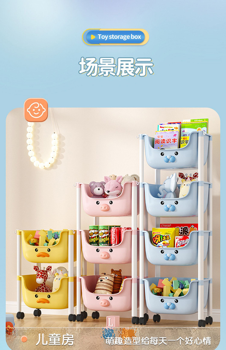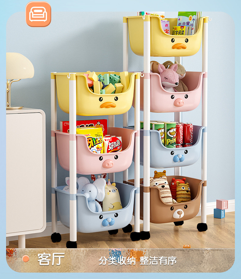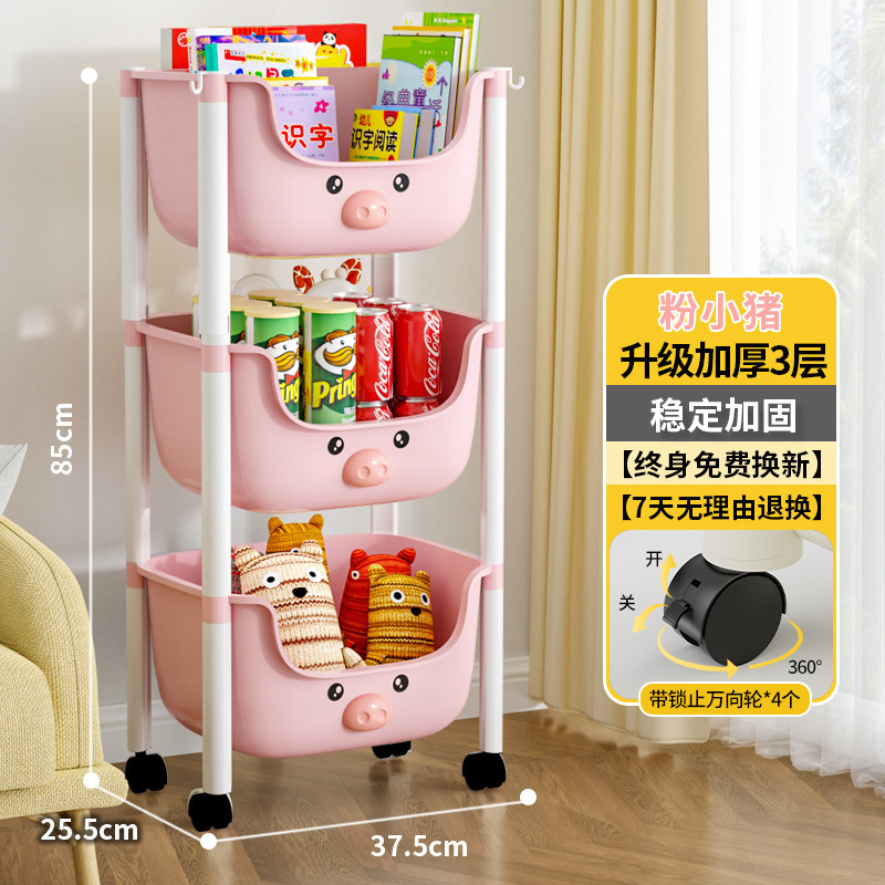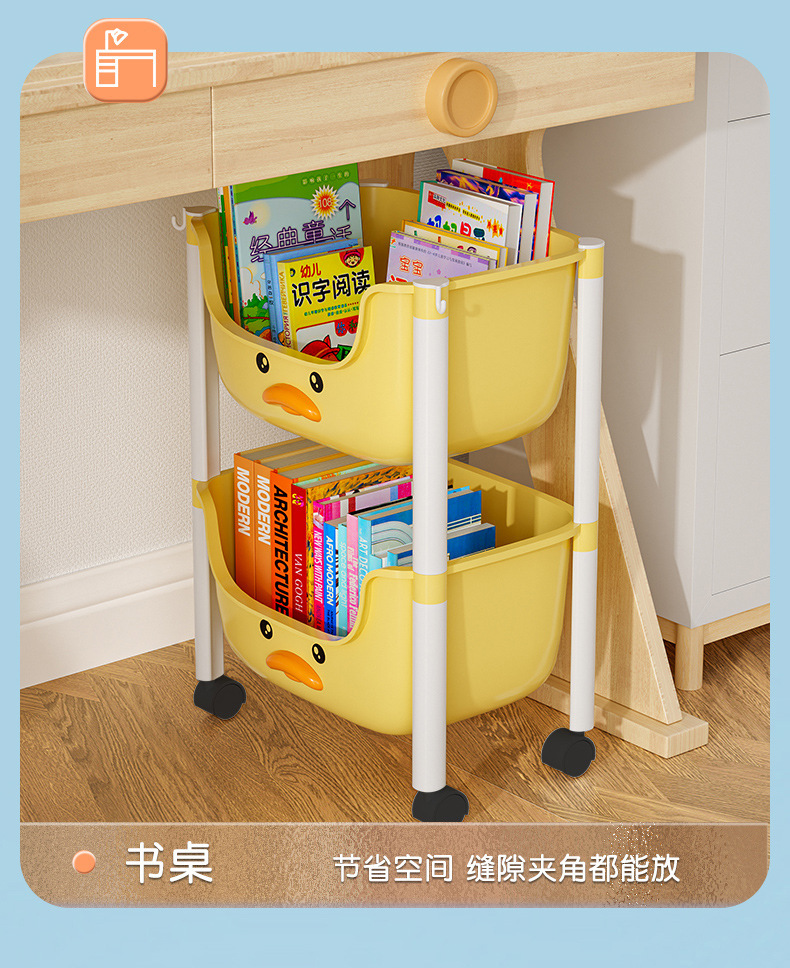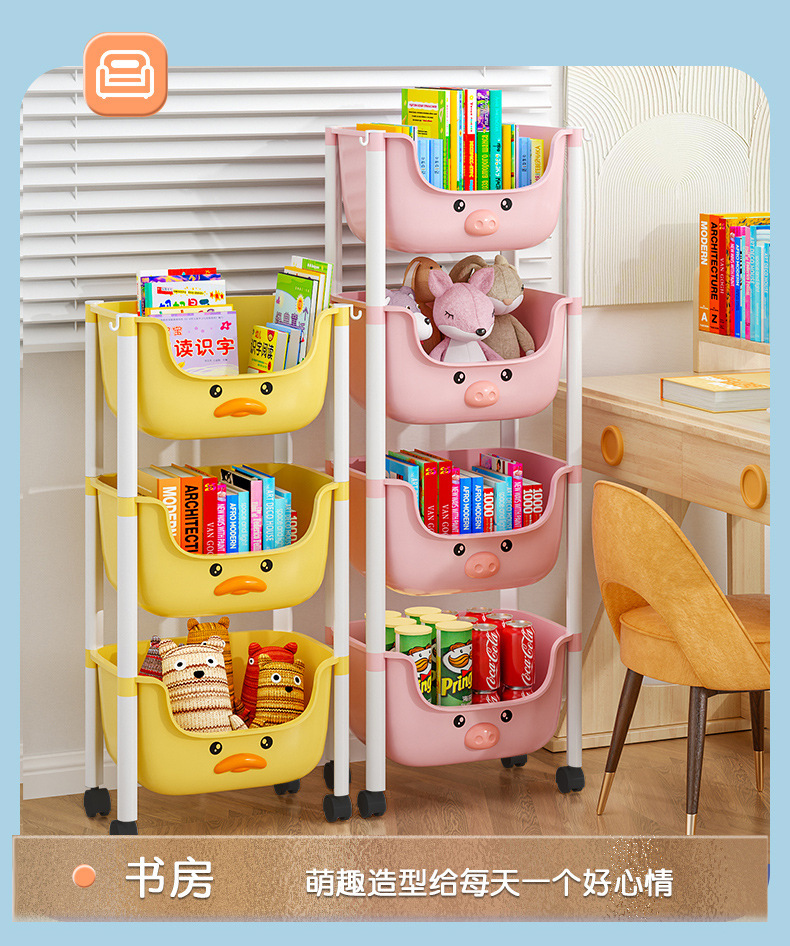 Qiao Jie 소형 트롤리 수납 선반, 어린이 장난감 보관함, 가정용 책꽂이, 그림책 선반, 이동식 다층 정리 선반