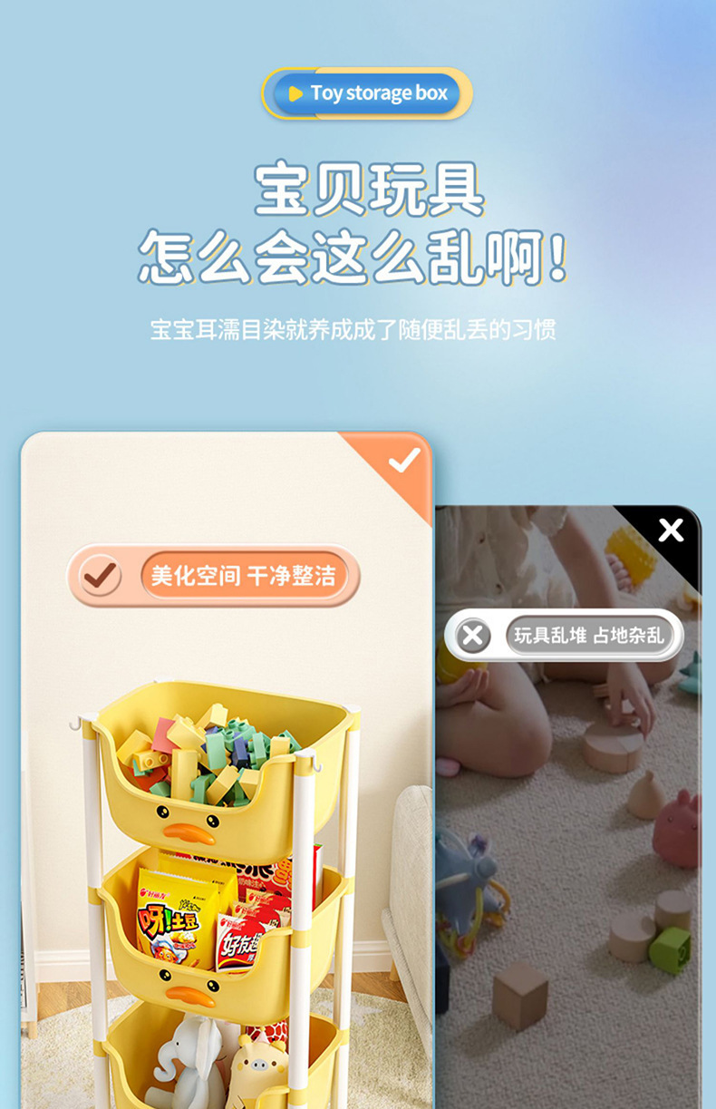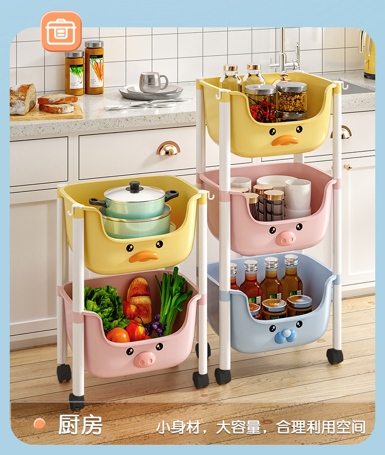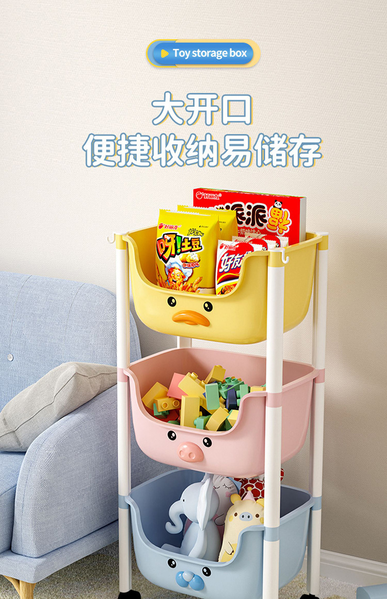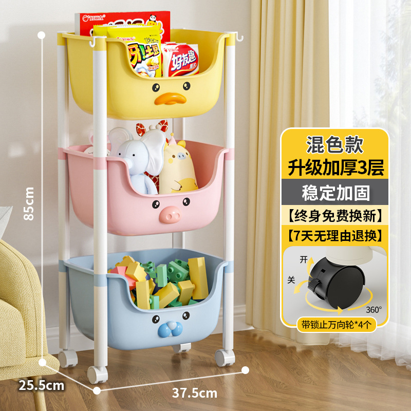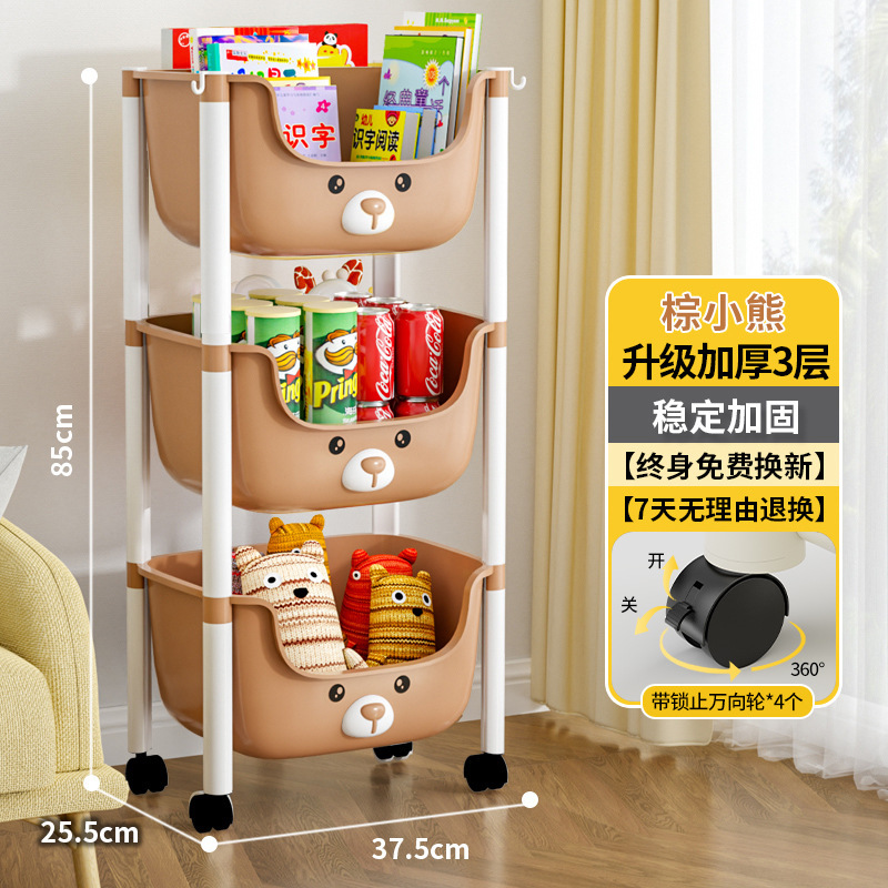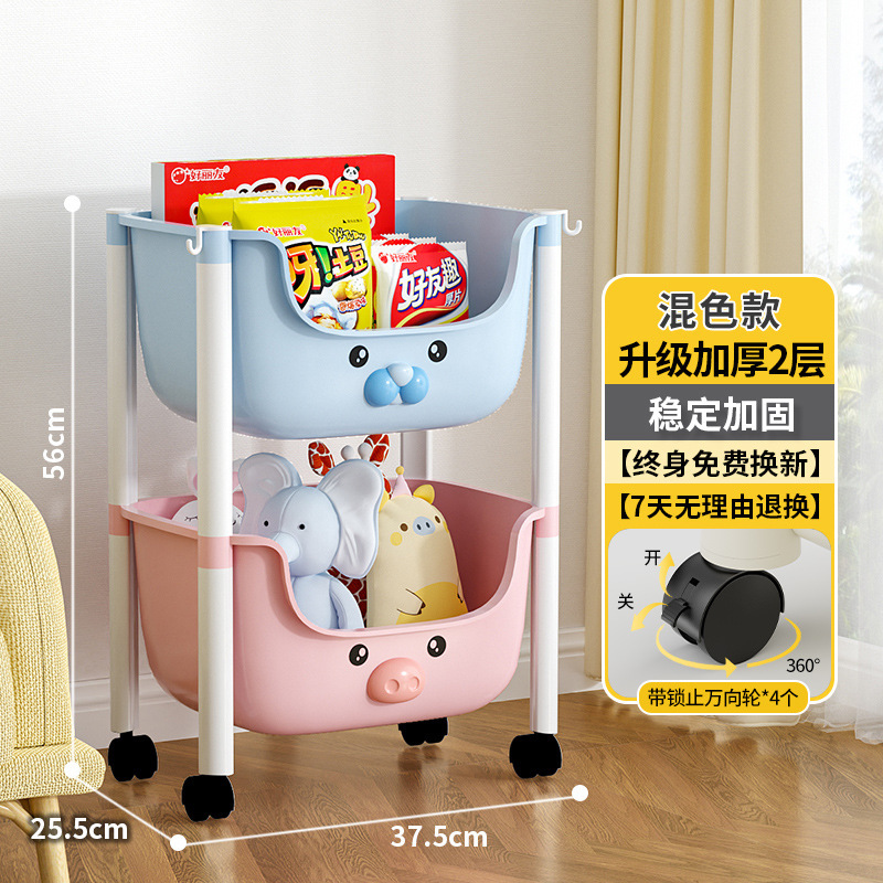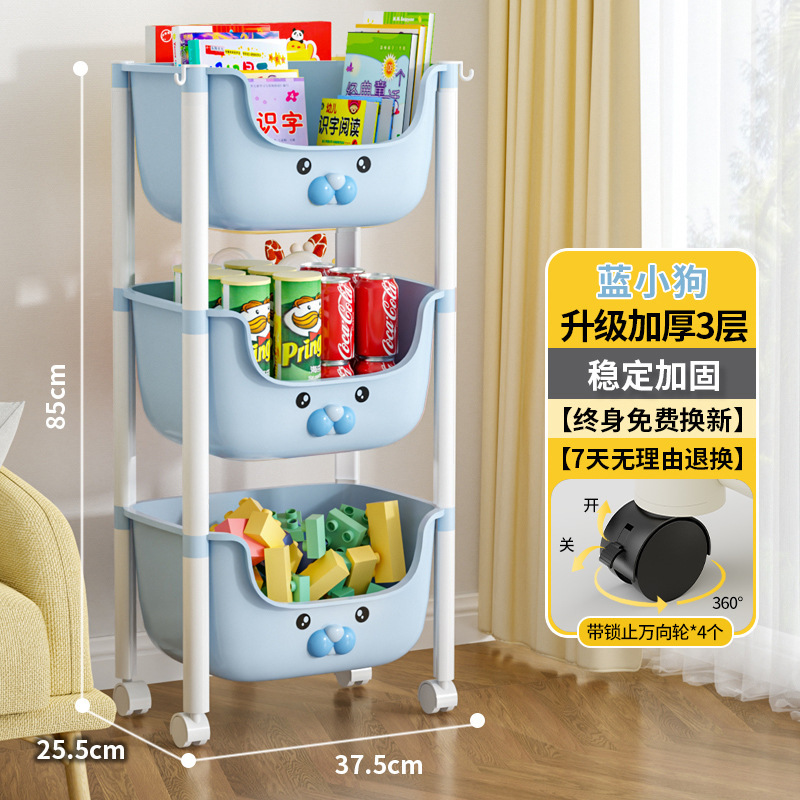 Qiao Jie 소형 트롤리 수납 선반, 어린이 장난감 보관함, 가정용 책꽂이, 그림책 선반, 이동식 다층 정리 선반