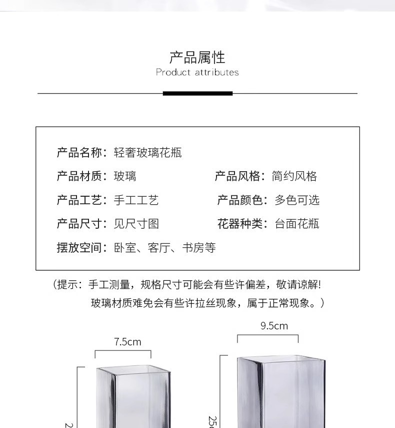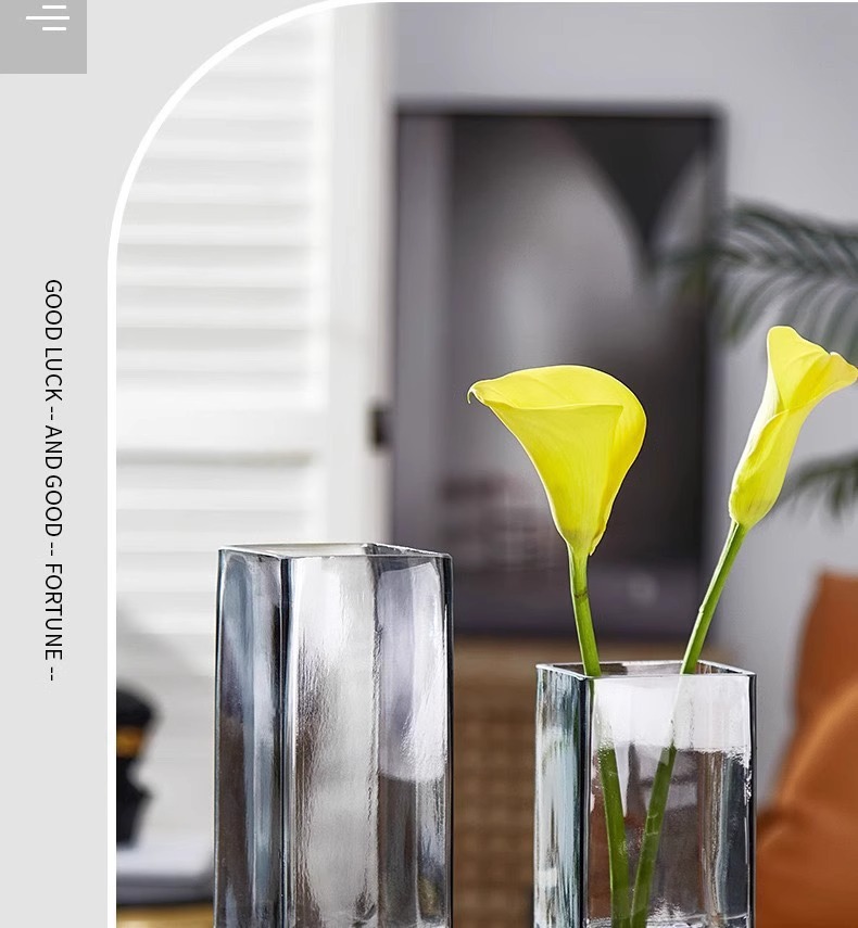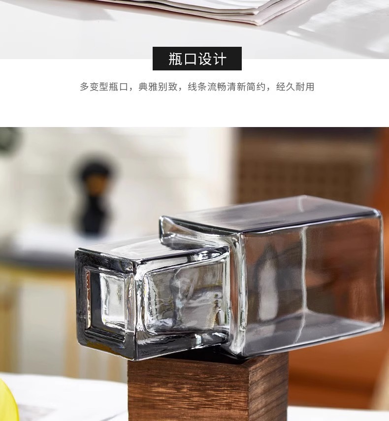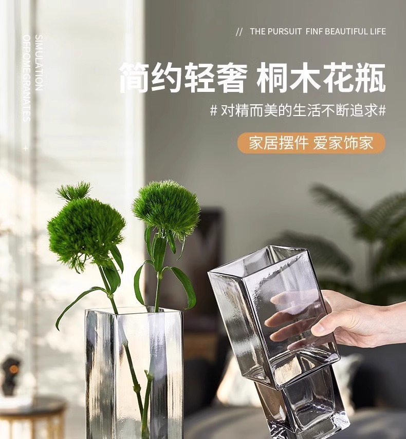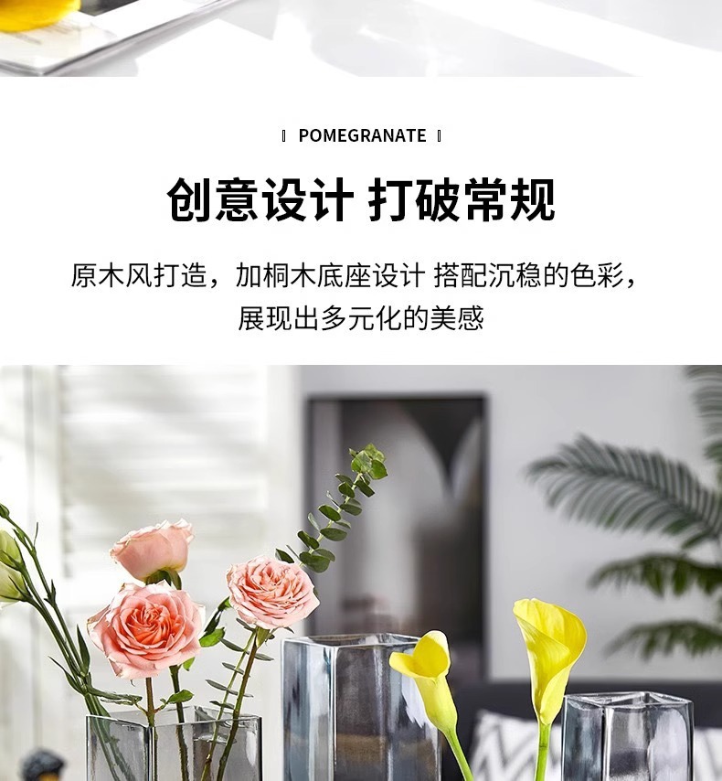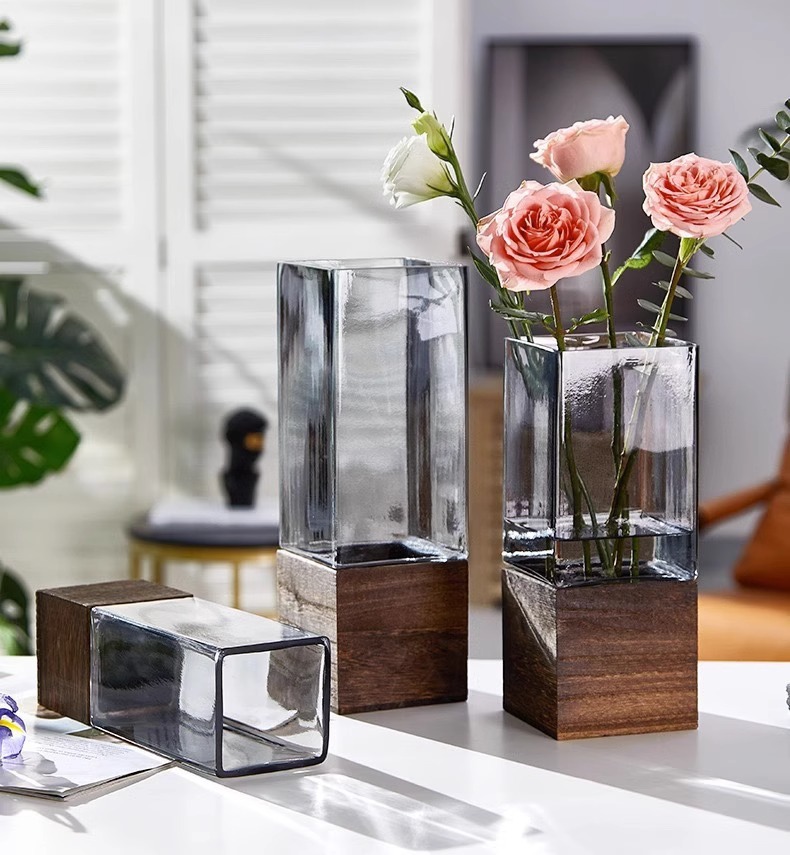 현대 간단한 사각형 나무 브래킷 투명 유리 고급 감각 꽃병 홈 수경 고품질 장식품 스타일