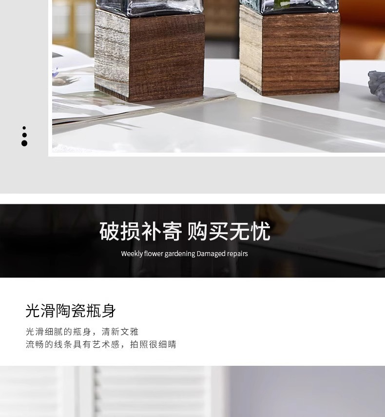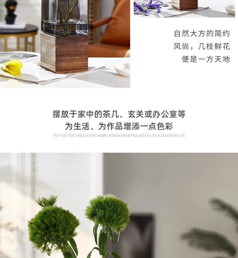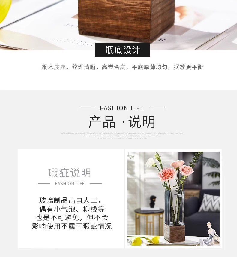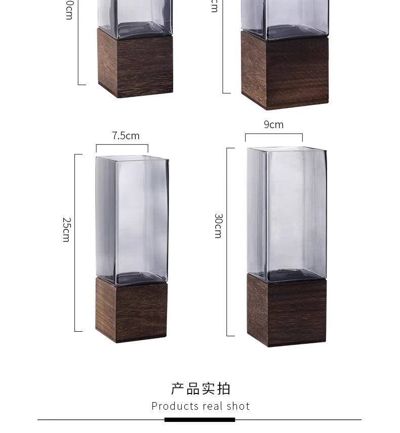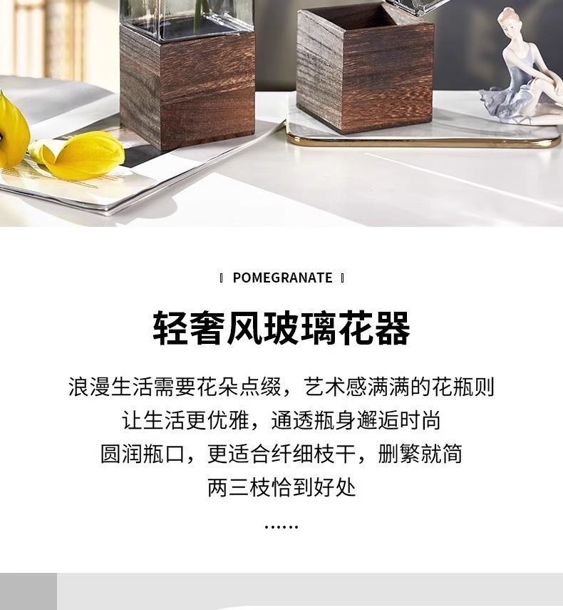 현대 간단한 사각형 나무 브래킷 투명 유리 고급 감각 꽃병 홈 수경 고품질 장식품 스타일스토어 가기