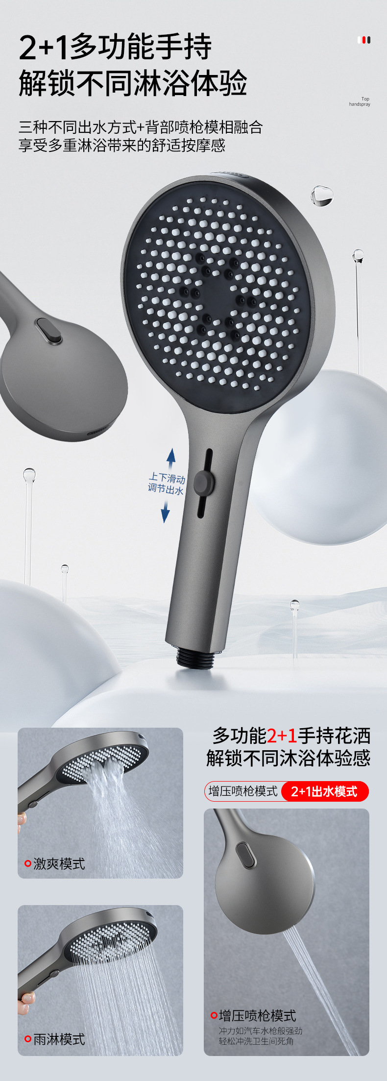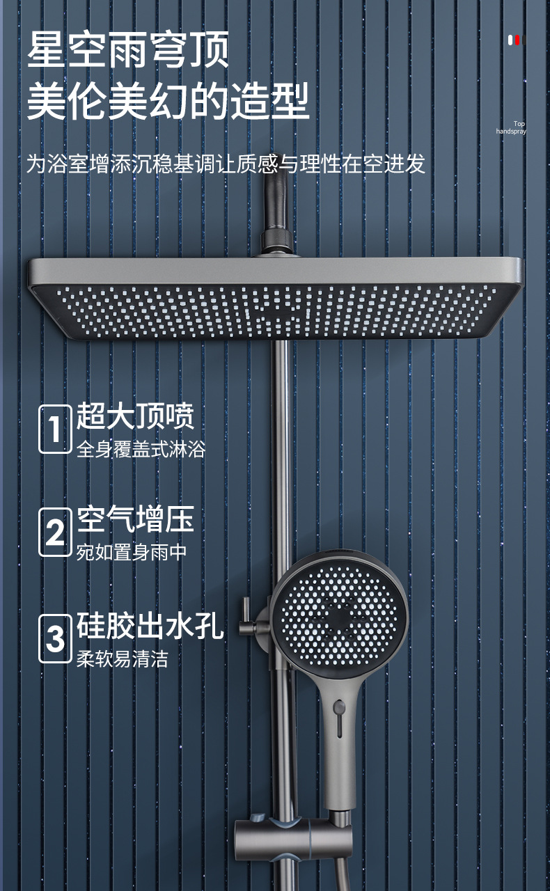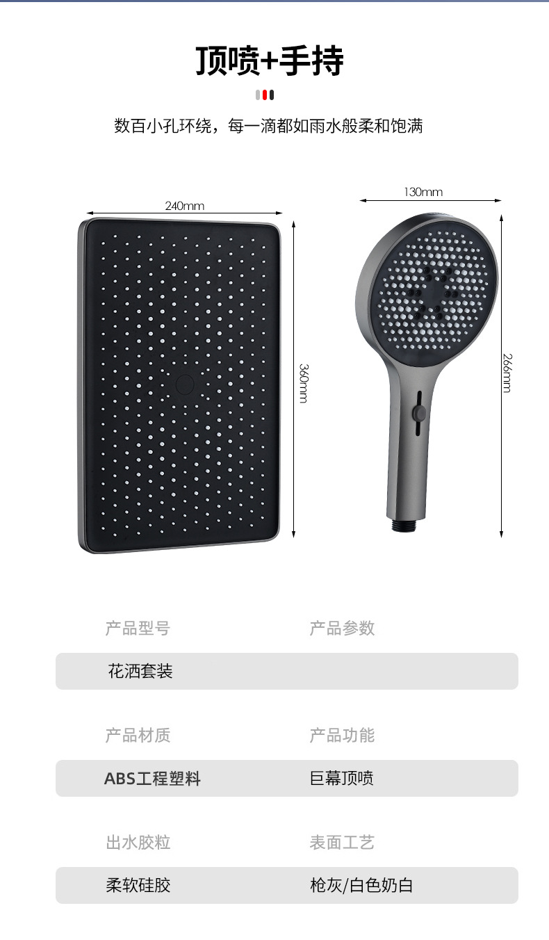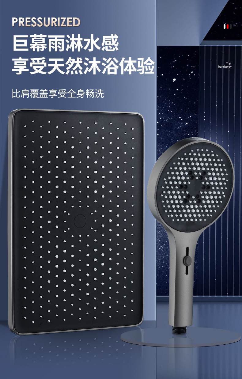 건 그레이 샤워 핸드 헬드 탑 스프레이 샤워 세트 가압 확장 샤워 헤드 욕실 목욕 샤워