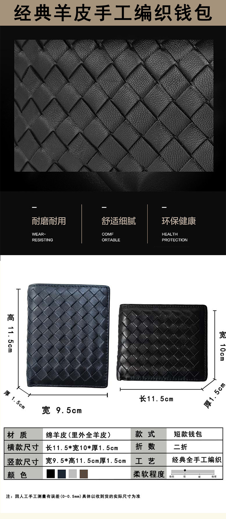 공장 직매 정품 가죽 남성용 짧은 지갑 양가죽 수제 짠 남성 지갑 경량 동전 가방 멀티 카드 슬롯