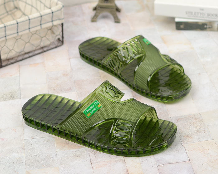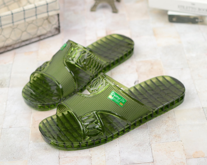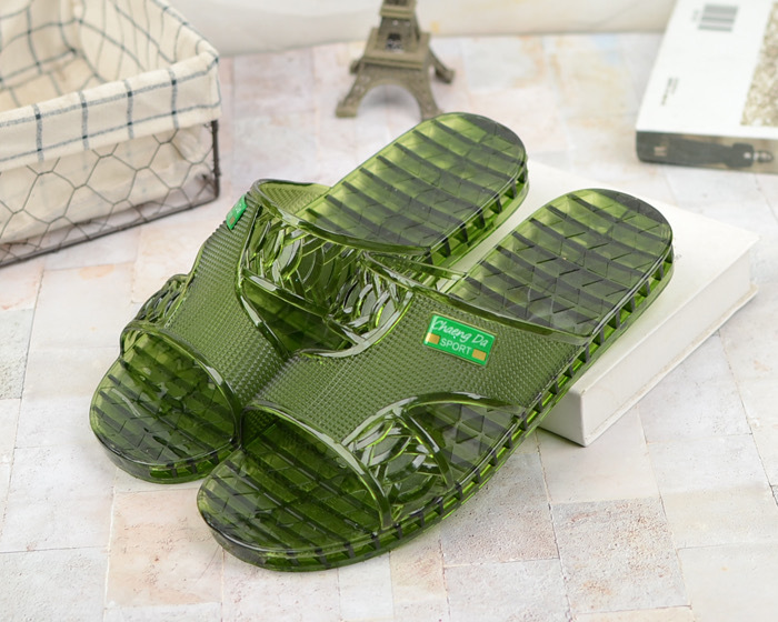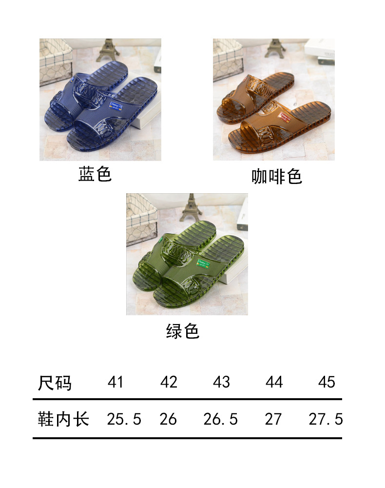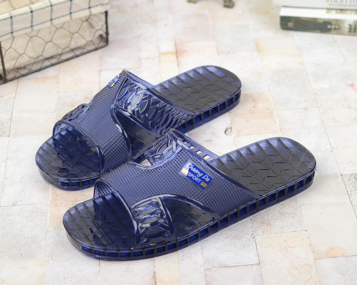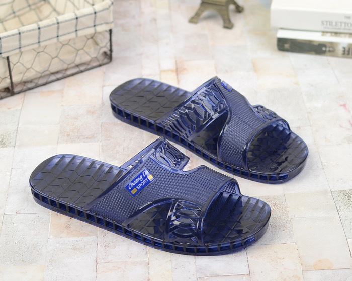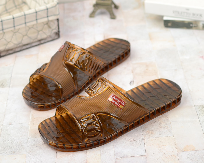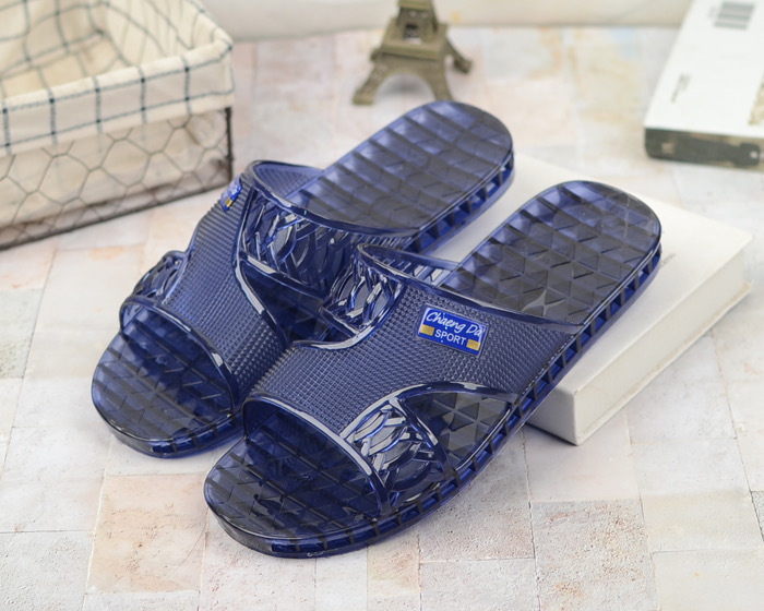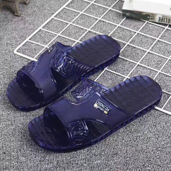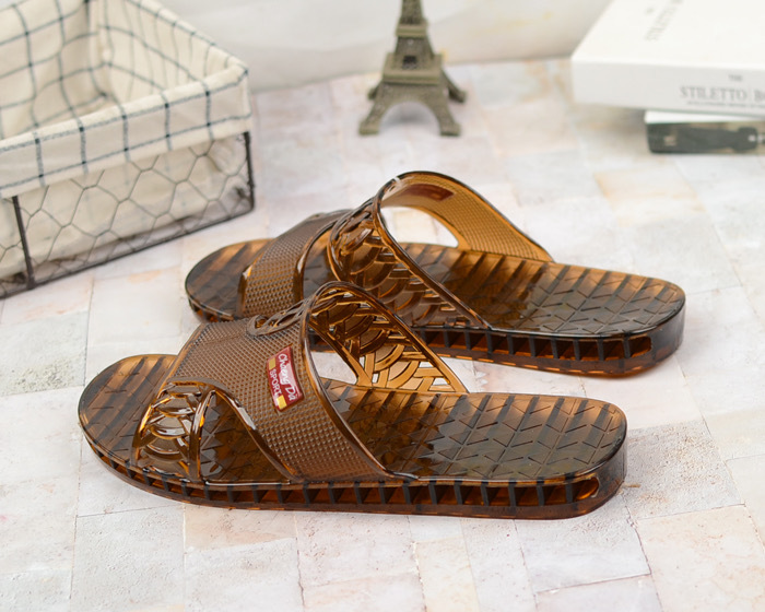 여름 새로운 크리스탈 슬리퍼 남성용 방수 및 냄새 방지 욕실 목욕 겉옷 투명 젤리 바닥 플라스틱 슬립 온스토어 가기