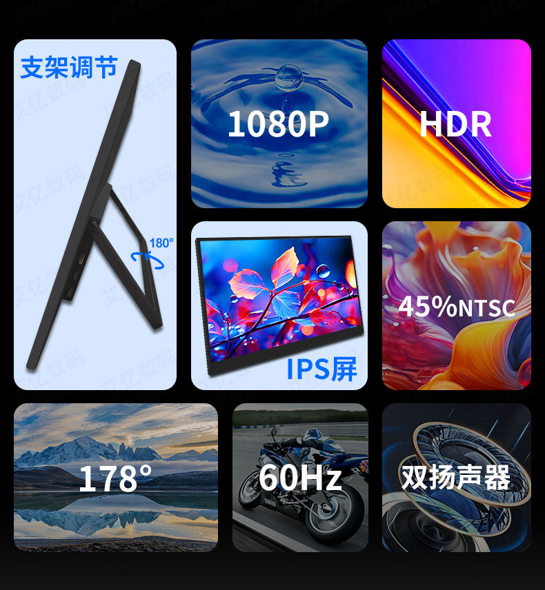 18.5寸HDMI高清便携显示器手机电脑扩展PS5带桌面支架可壁挂120HZ