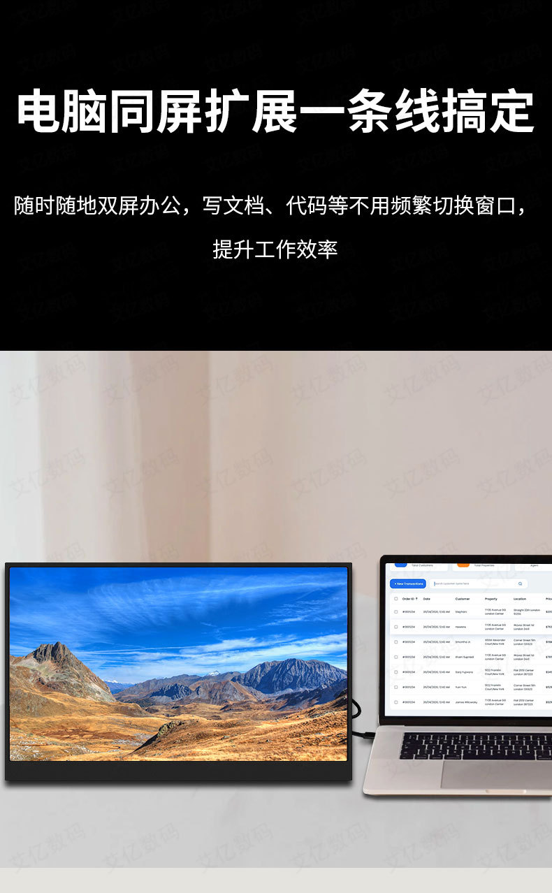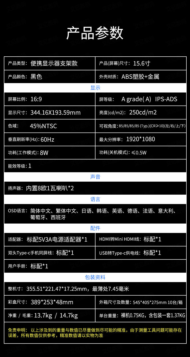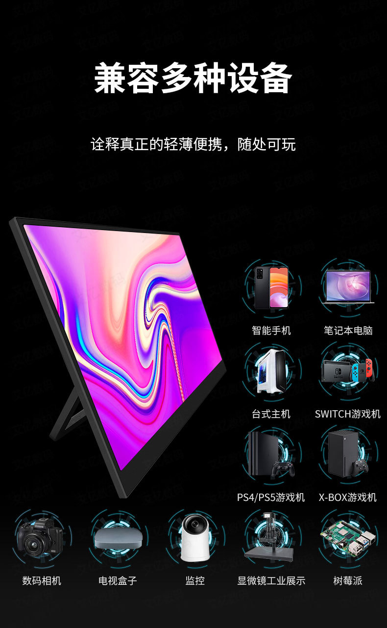 15.6/16/17.3寸便携式显示器手机电脑笔记本PS5/switch外接拓展屏