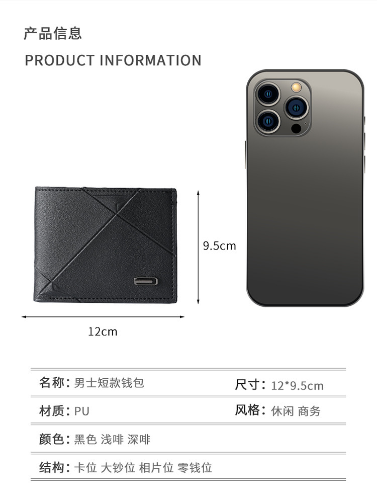 새로운 남성 지갑 남성용 짧은 멀티 카드 세련된 캐주얼 지갑 남성용 청소년 얇은 3 배 크로스 소프트 지갑