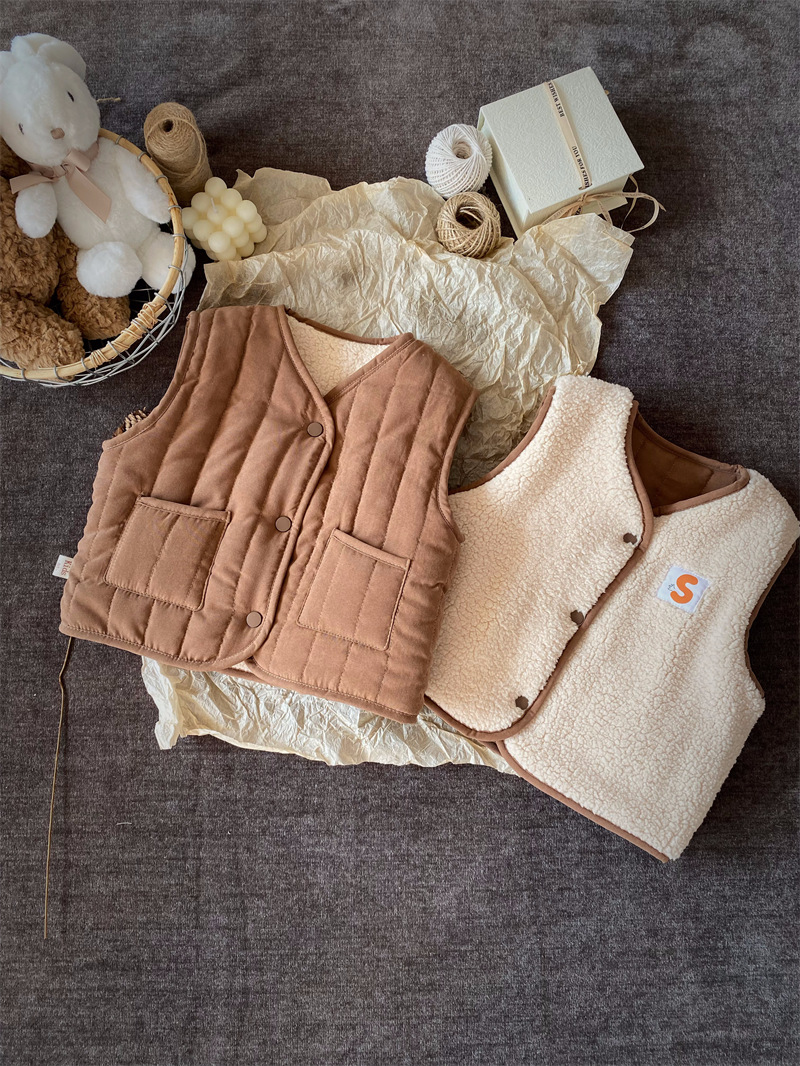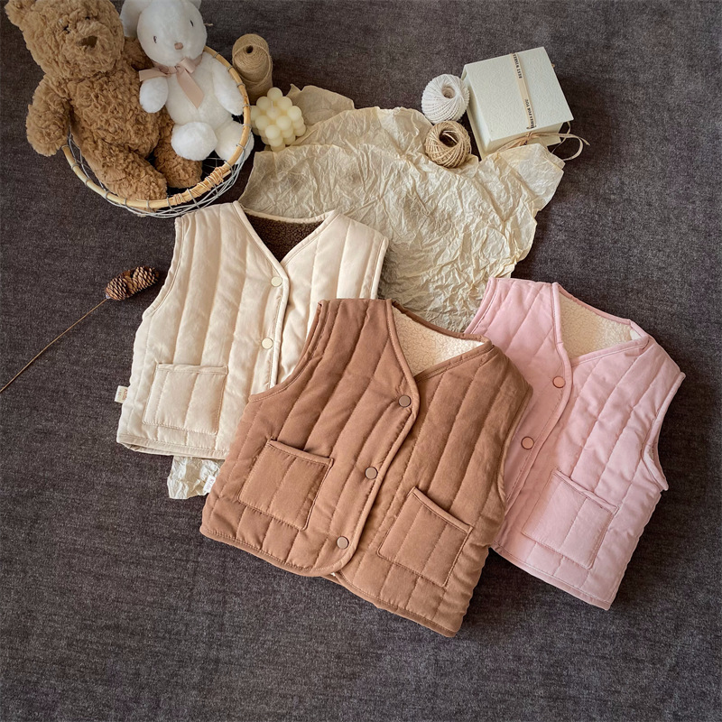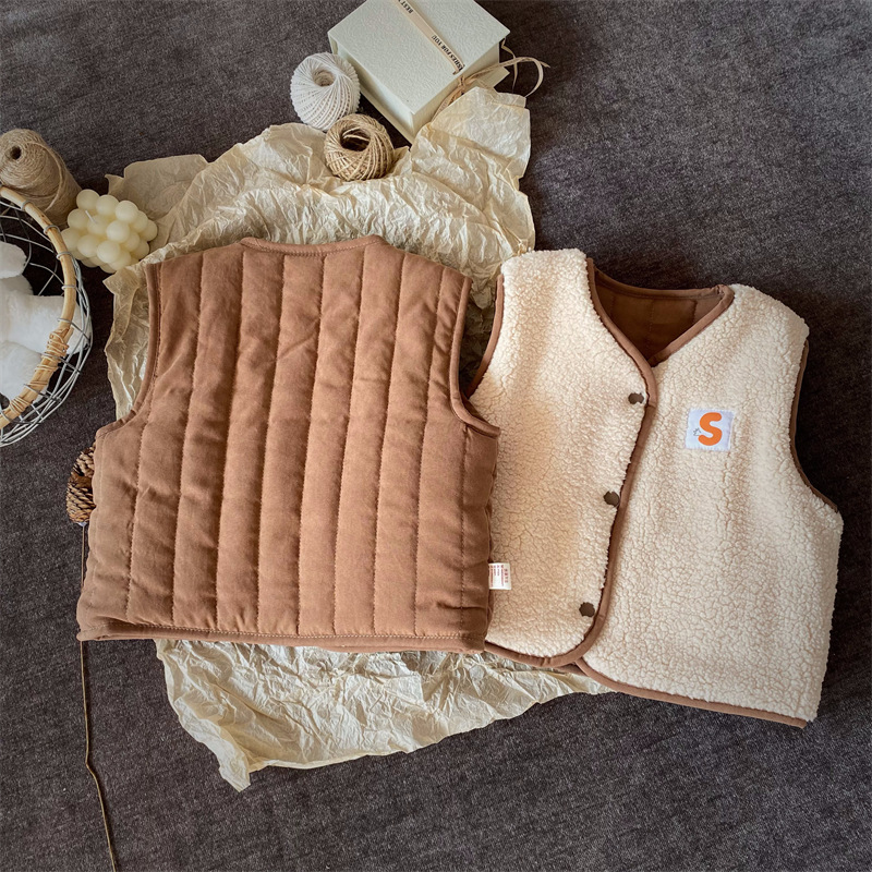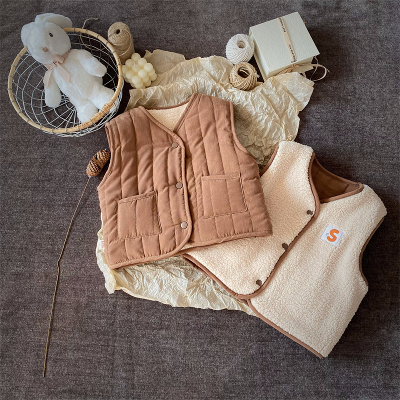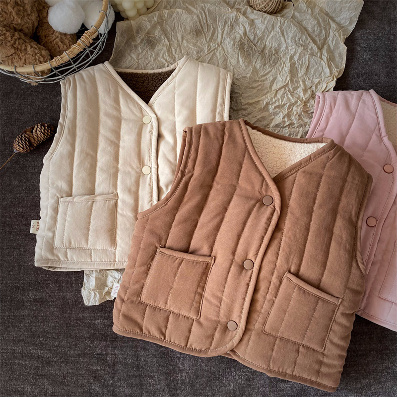 한국식 아동복 어린이 조끼 겨울 일본식 소년 소녀 느슨한 트렌디 한 아동면 조끼 아기 양복 조끼 겉옷 패션스토어 가기