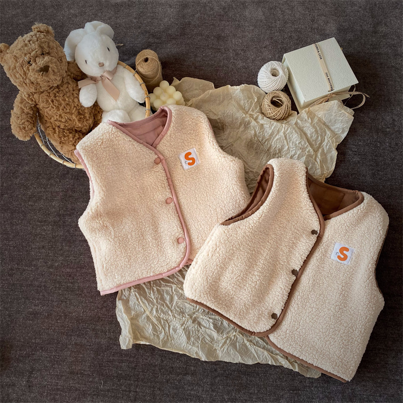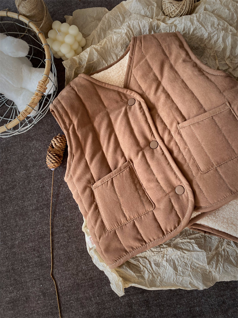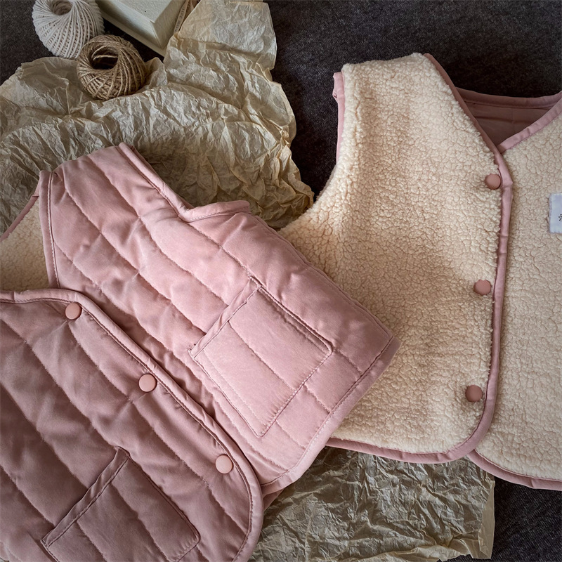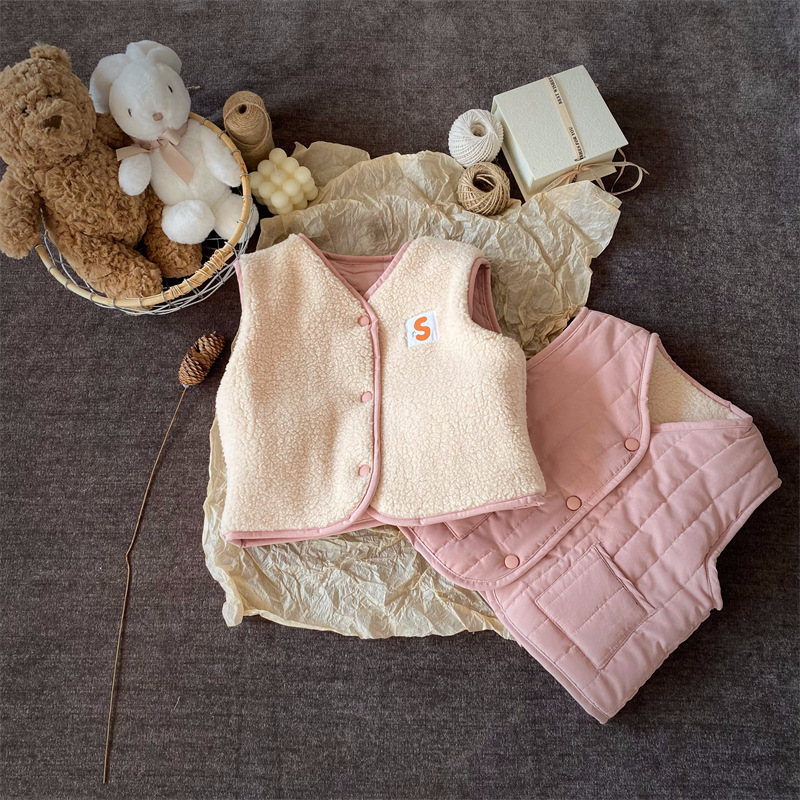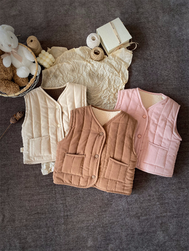 한국식 아동복 어린이 조끼 겨울 일본식 소년 소녀 느슨한 트렌디 한 아동면 조끼 아기 양복 조끼 겉옷 패션스토어 가기