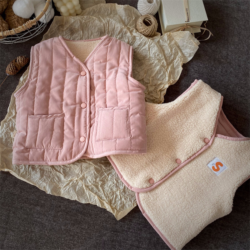 한국식 아동복 어린이 조끼 겨울 일본식 소년 소녀 느슨한 트렌디 한 아동면 조끼 아기 양복 조끼 겉옷 패션