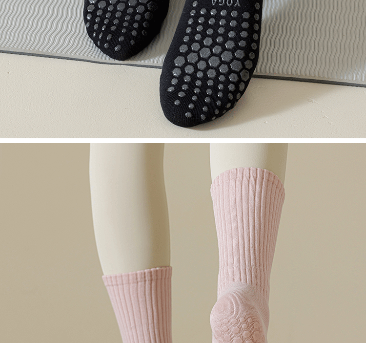 요가 양말 미끄럼 방지 전문 여성용 미드 튜브 양말 가을과 겨울 면 뼈없는 실내 피트니스 필라테스 댄스 스포츠 양말