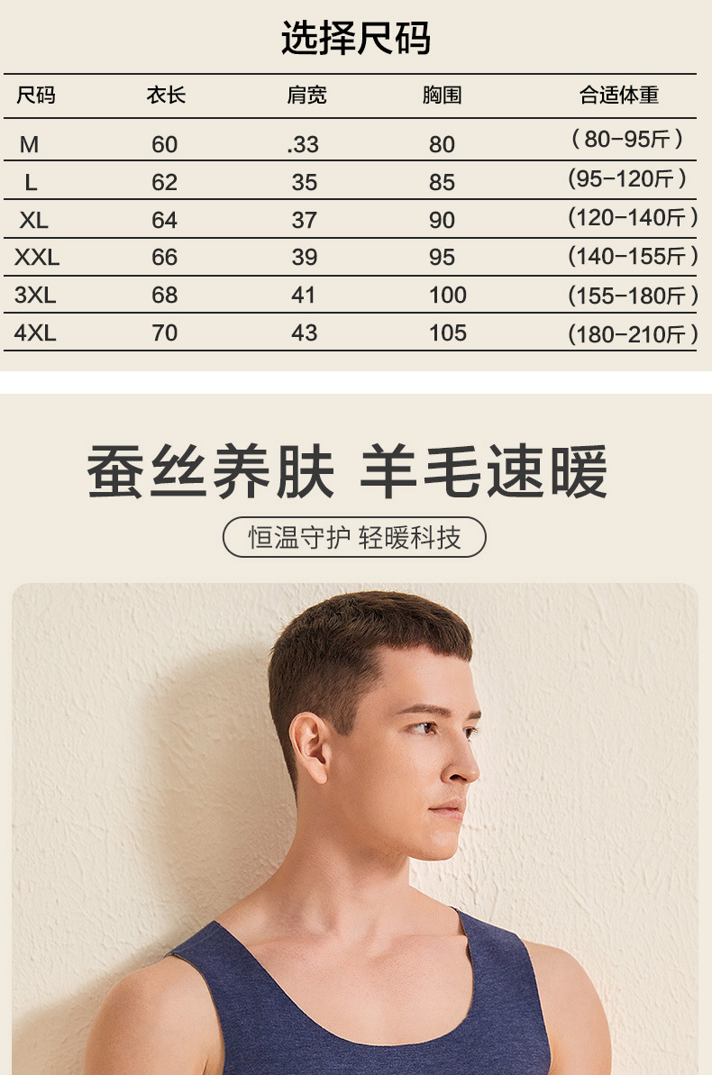남자의 따뜻한 조끼 울 실크 양복 조끼 원활한 슬림 조끼 가을과 겨울 새로운 속옷 제조 업체 도매
