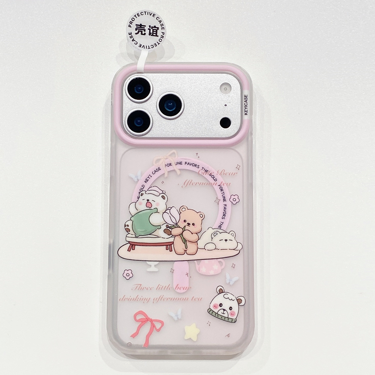 • 피부에 닿는 느낌의 자석 부착* 핑크 잔꽃무늬 곰돌이