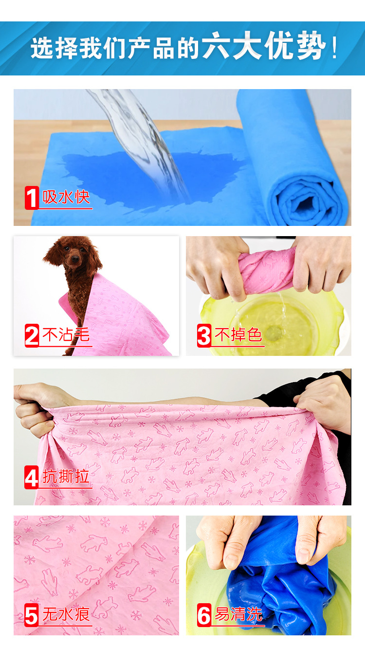 새로운 고급 애완동물 흡수성 수건, 모조 사슴가죽 엠보싱, 개와 고양이 청소용품, 애완동물 목욕 수건 도매