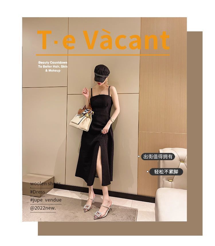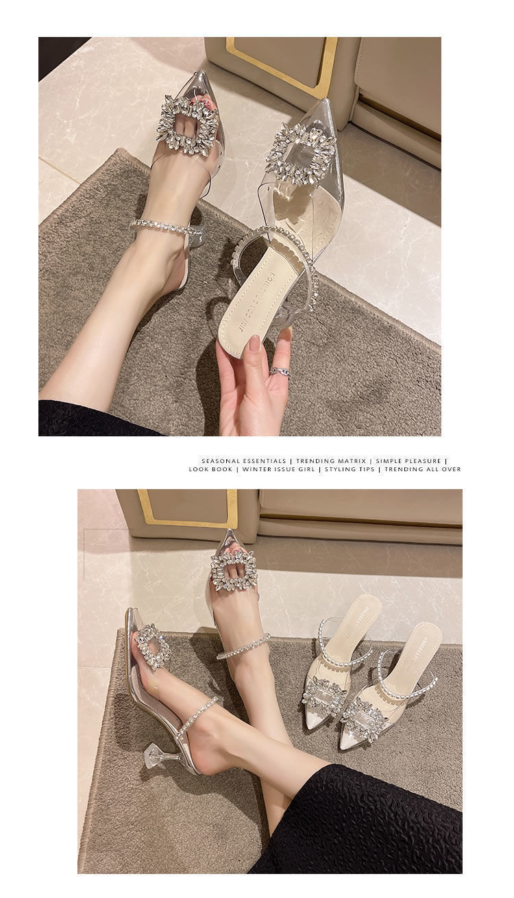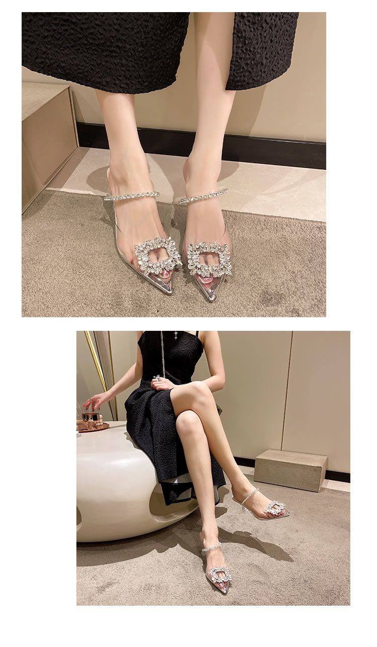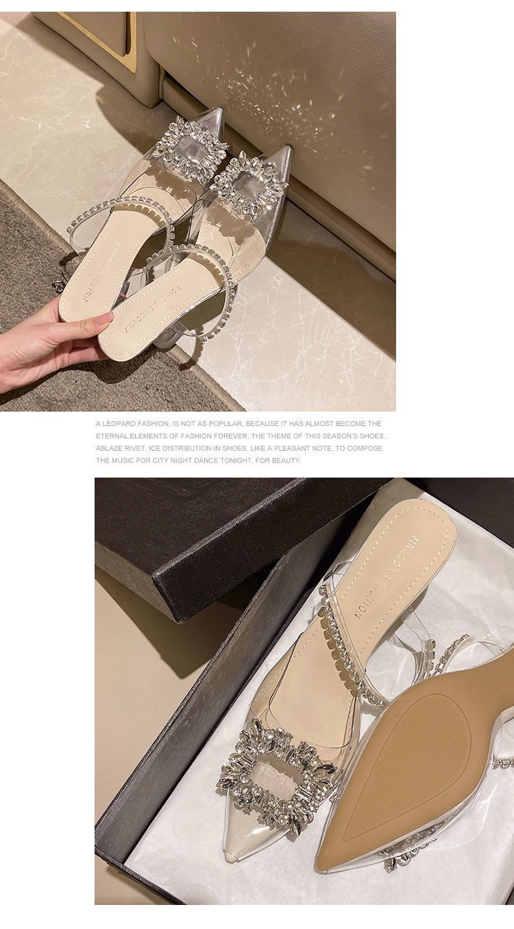 2023 여름 부드러운 요정 패션 하이힐 여성용 지적 데이트 투명 Baotou 하프 슬리퍼 미들 힐스토어 가기