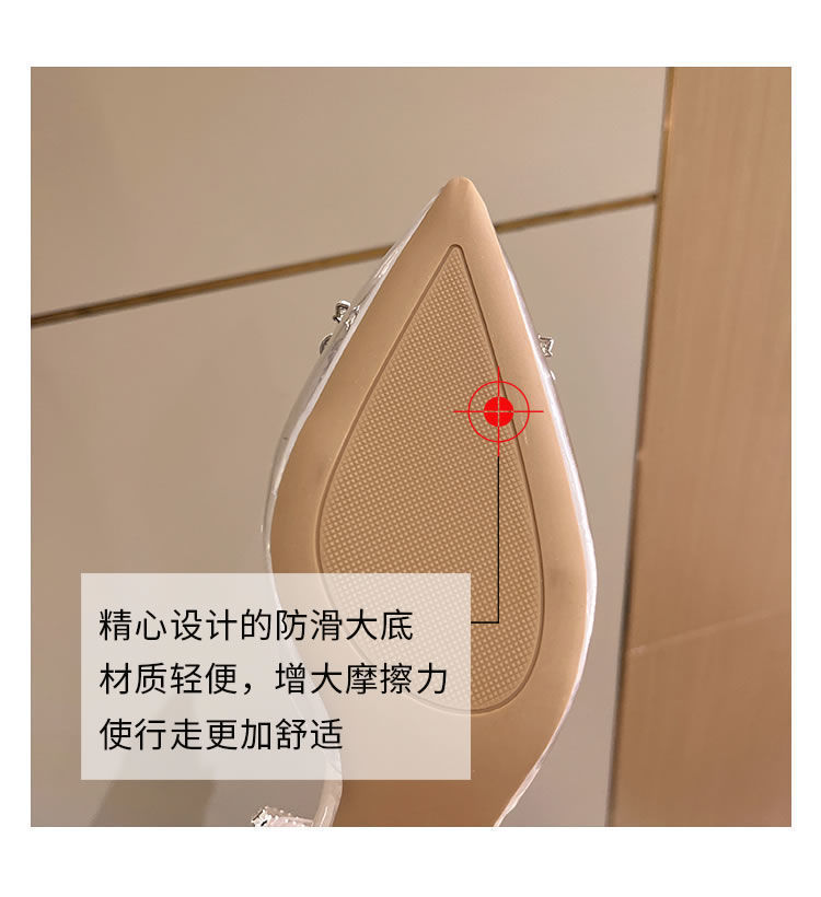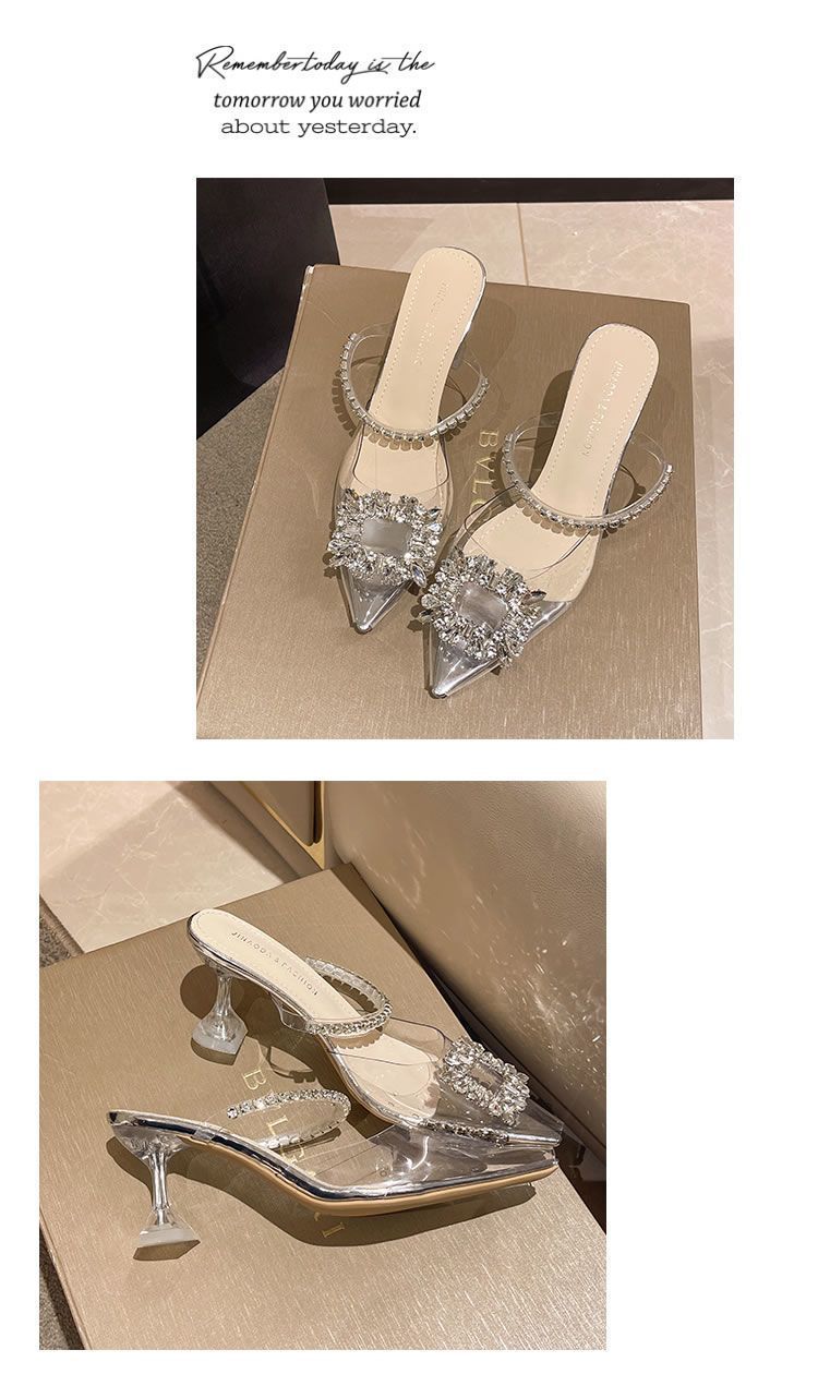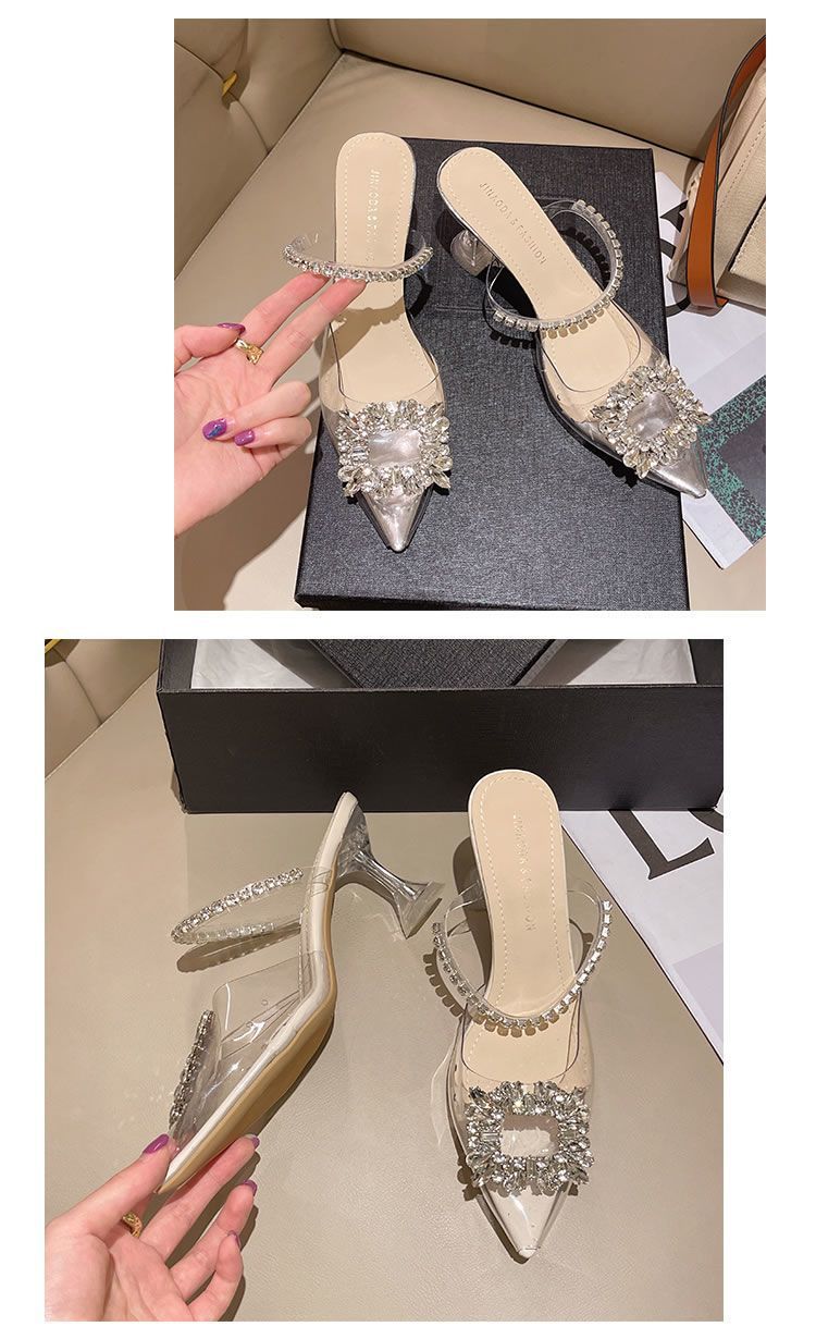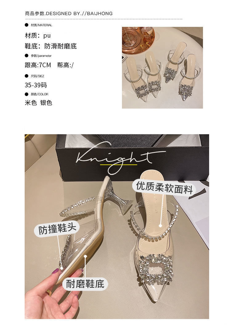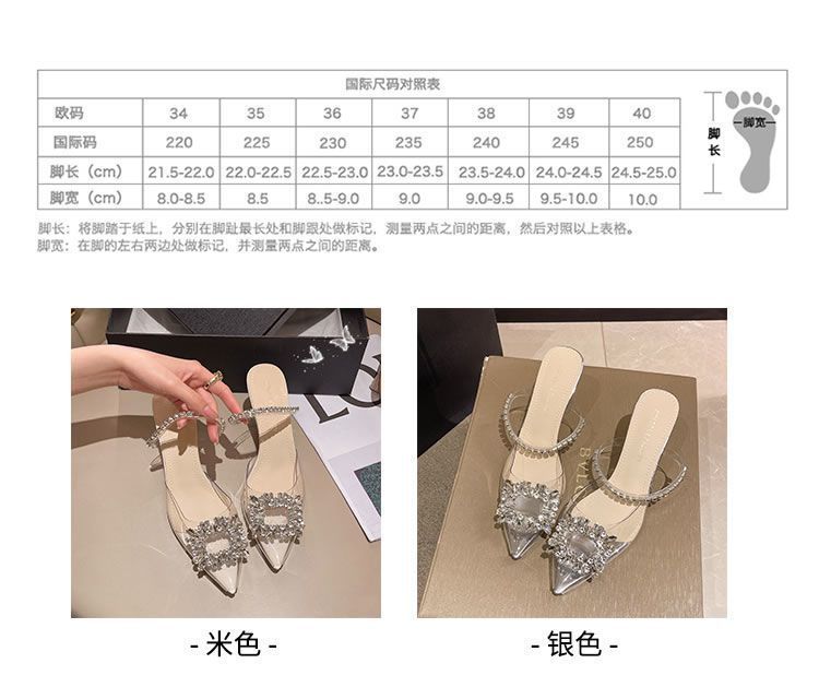 2023 여름 부드러운 요정 패션 하이힐 여성용 지적 데이트 투명 Baotou 하프 슬리퍼 미들 힐