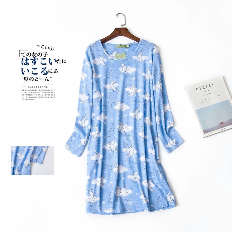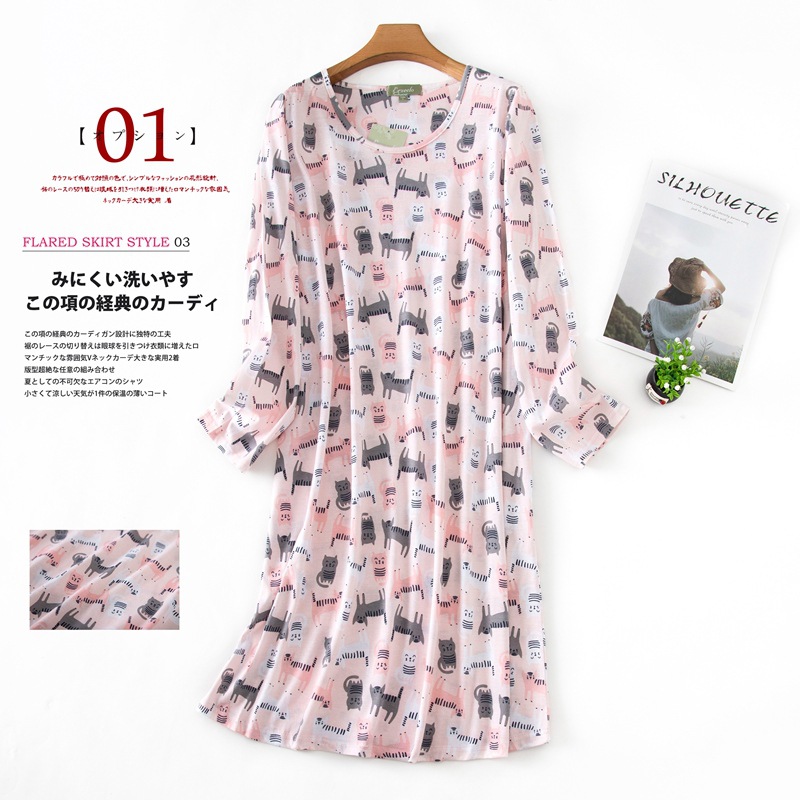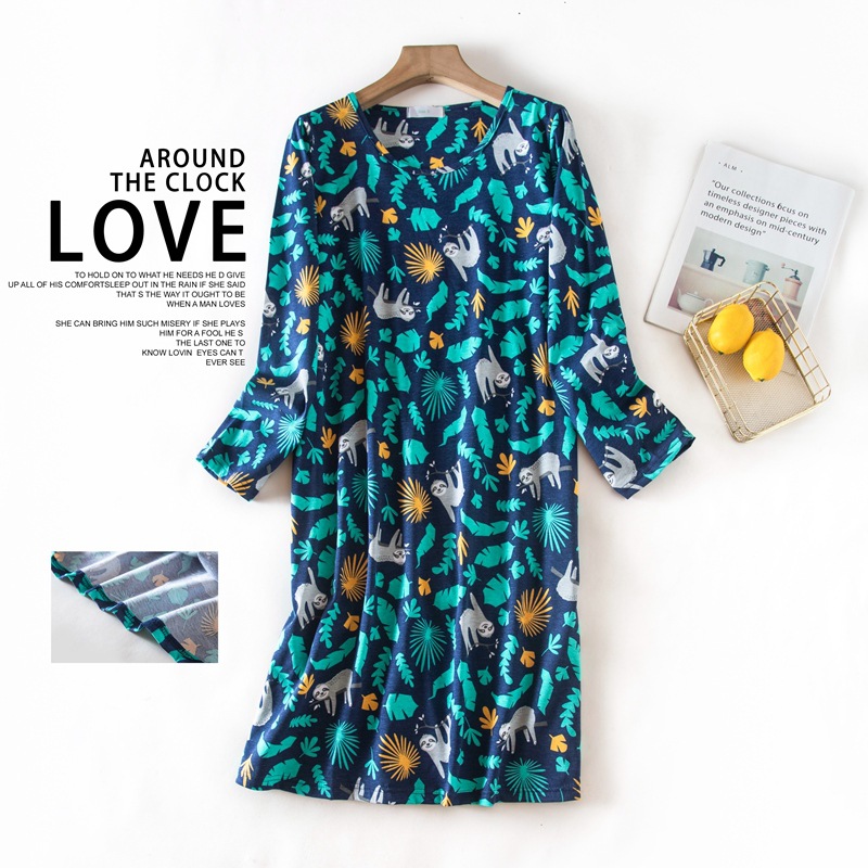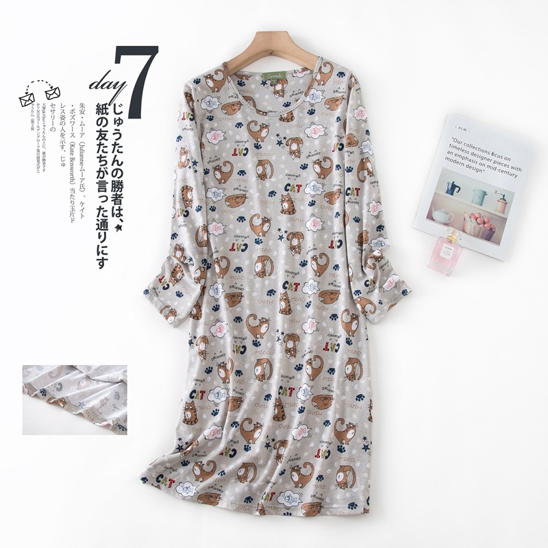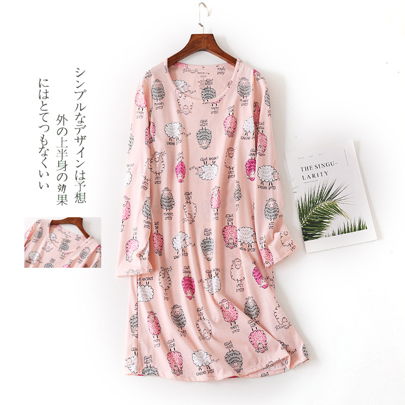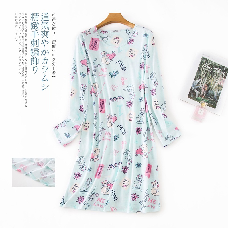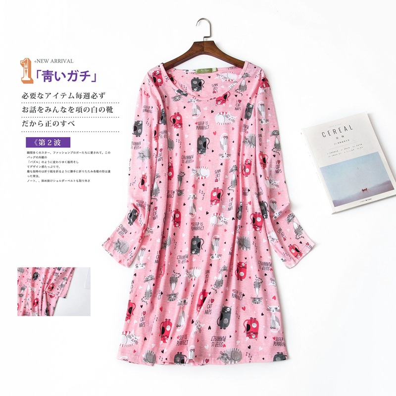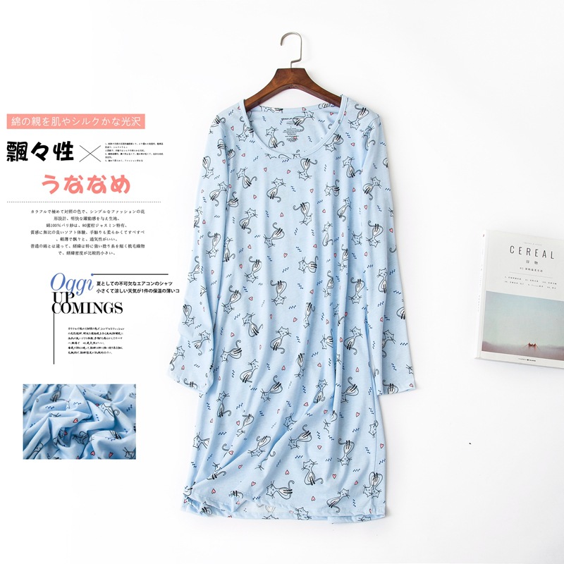 여름 긴팔 잠옷 여자의 플러스 사이즈 귀여운 만화 가정 옷 비료 니트 면 잠옷스토어 가기