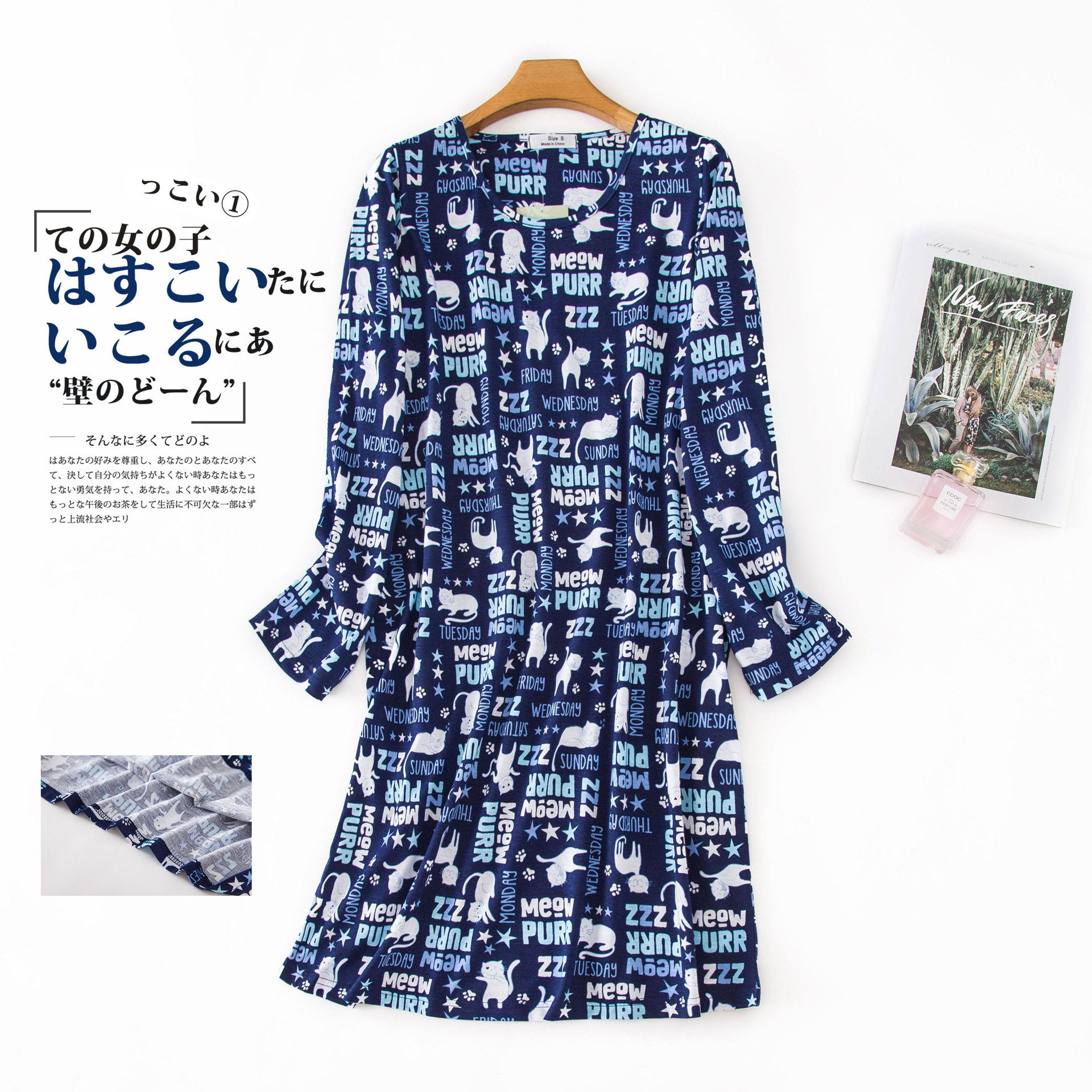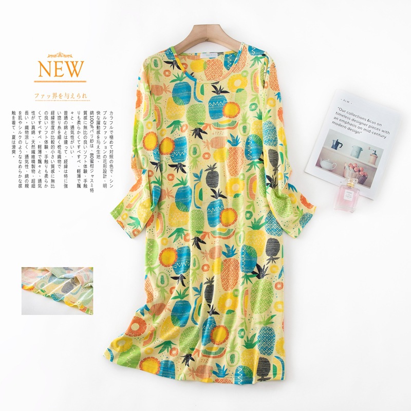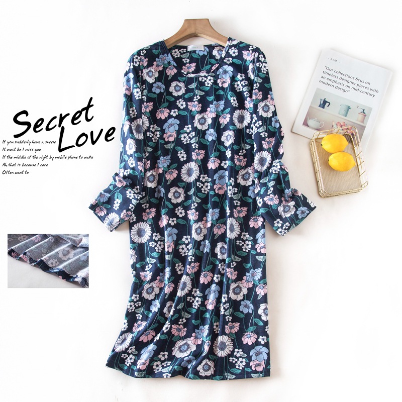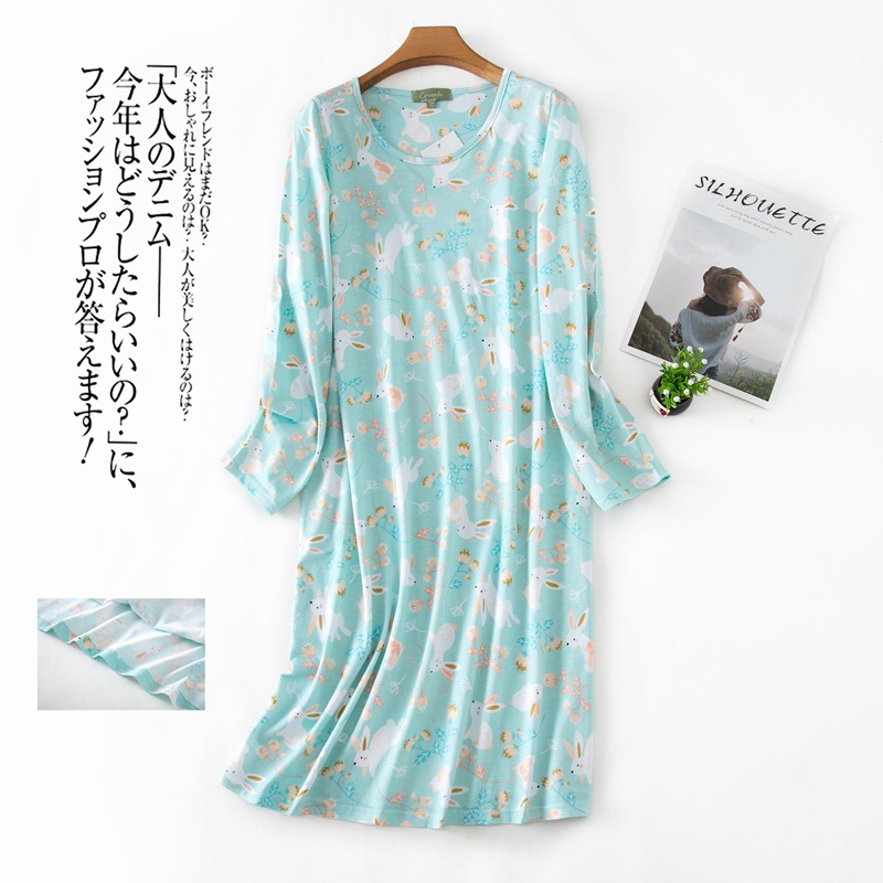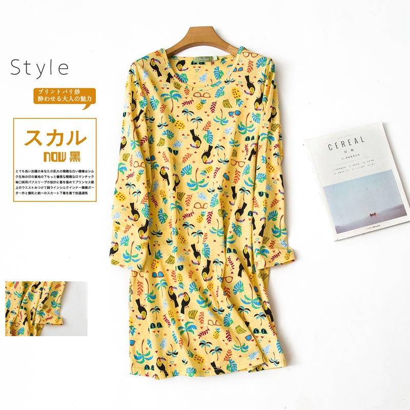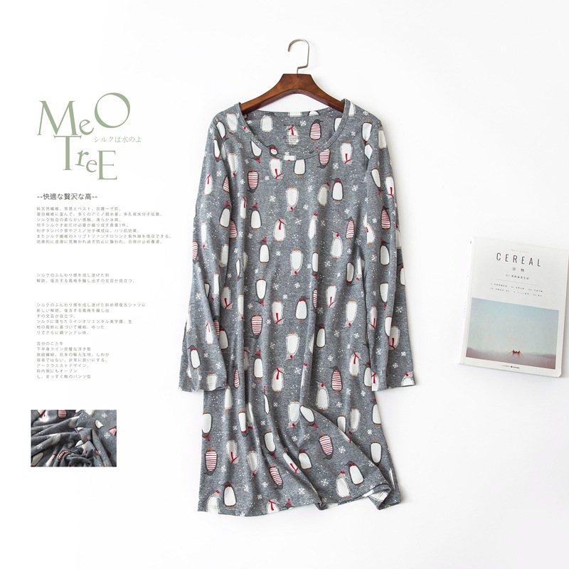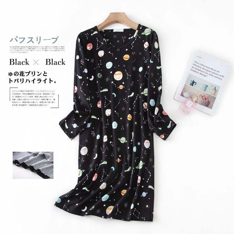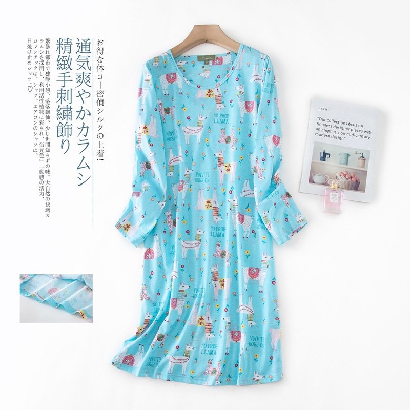 여름 긴팔 잠옷 여자의 플러스 사이즈 귀여운 만화 가정 옷 비료 니트 면 잠옷스토어 가기