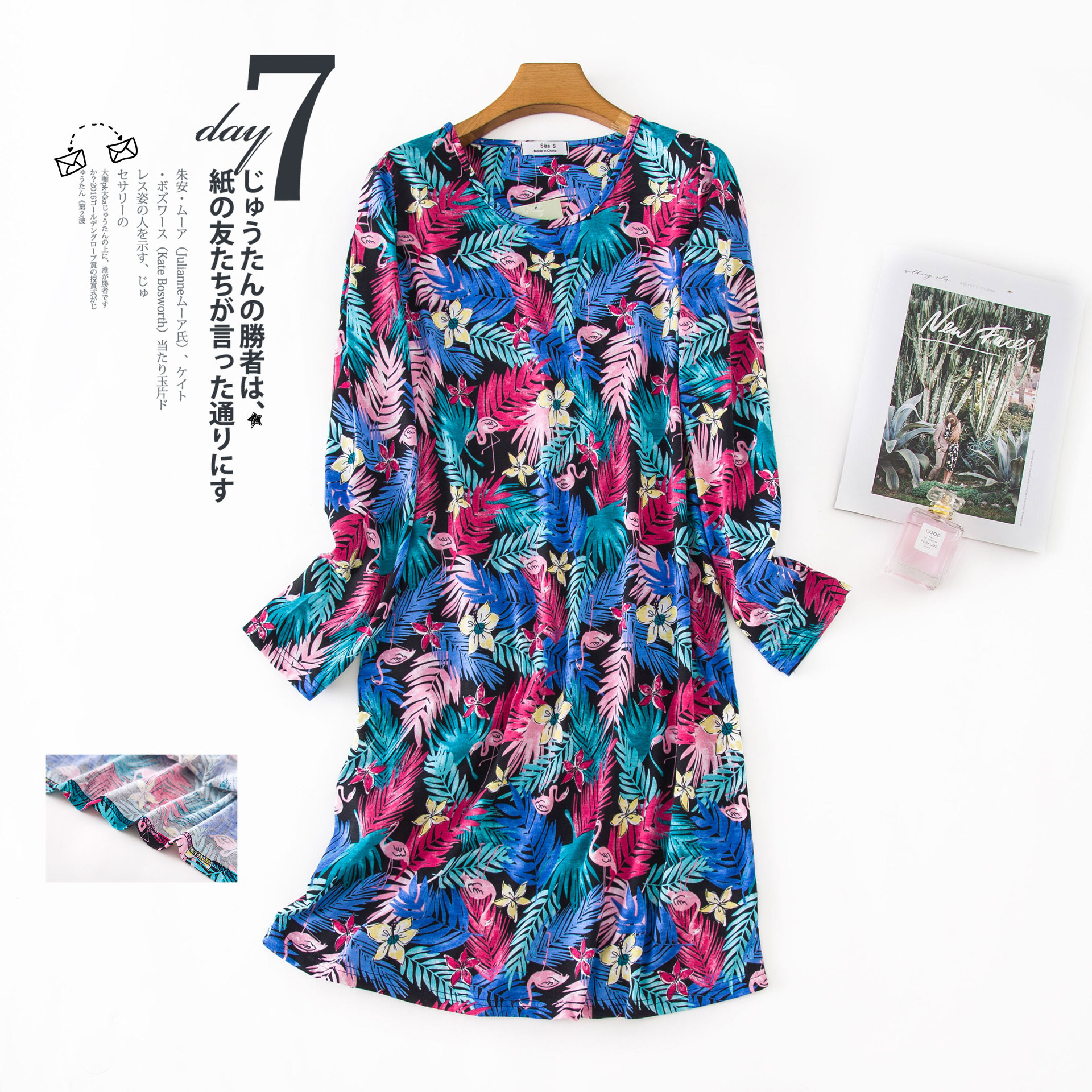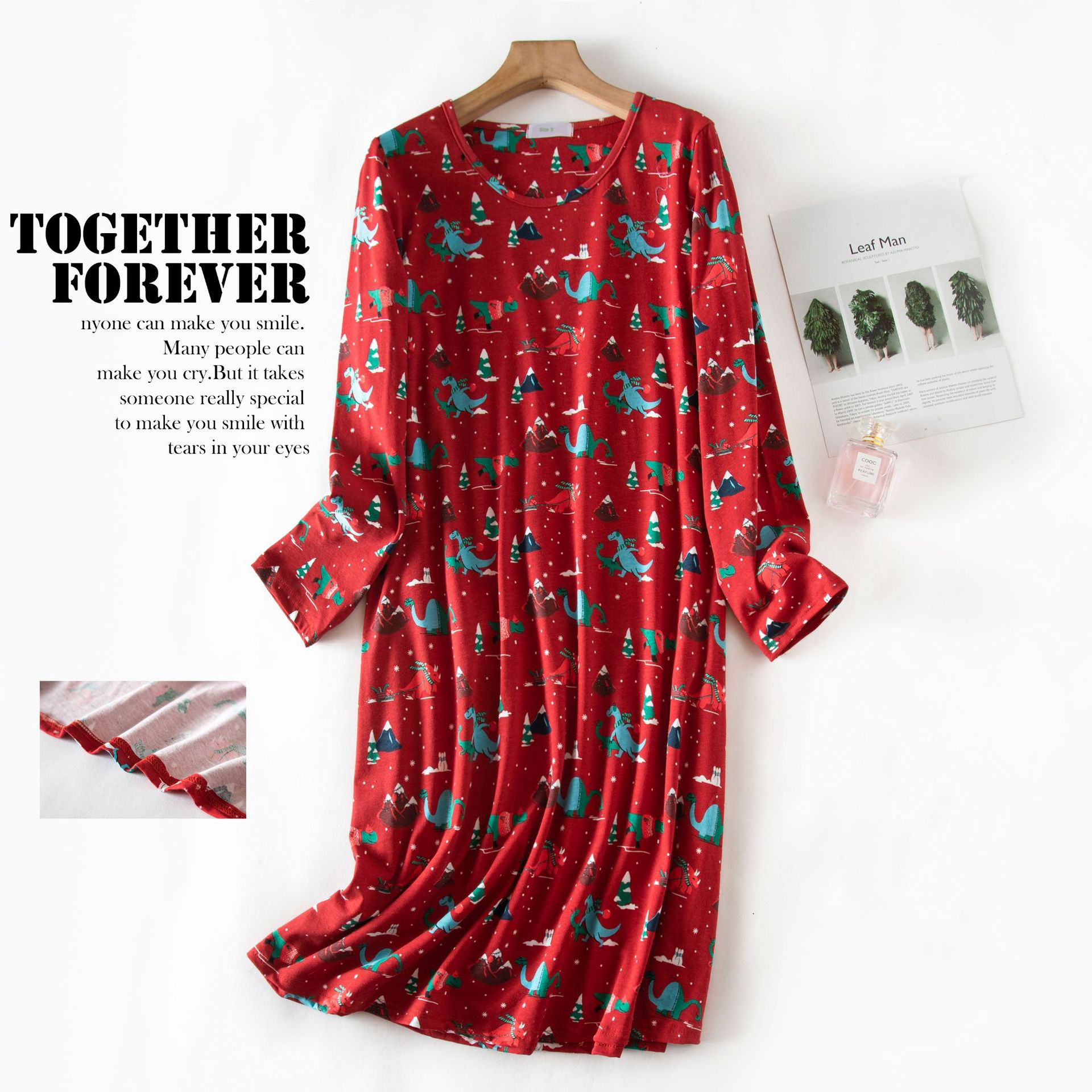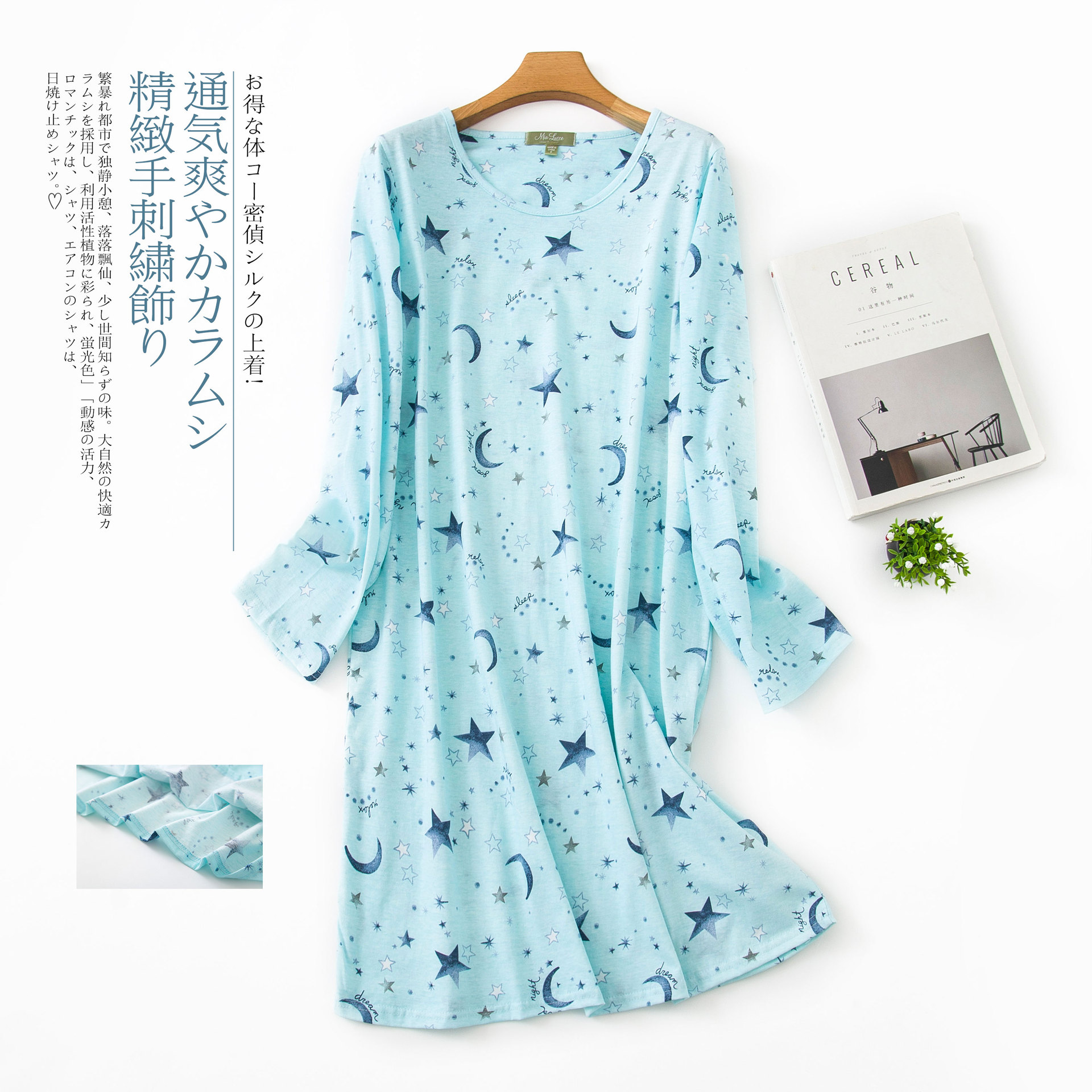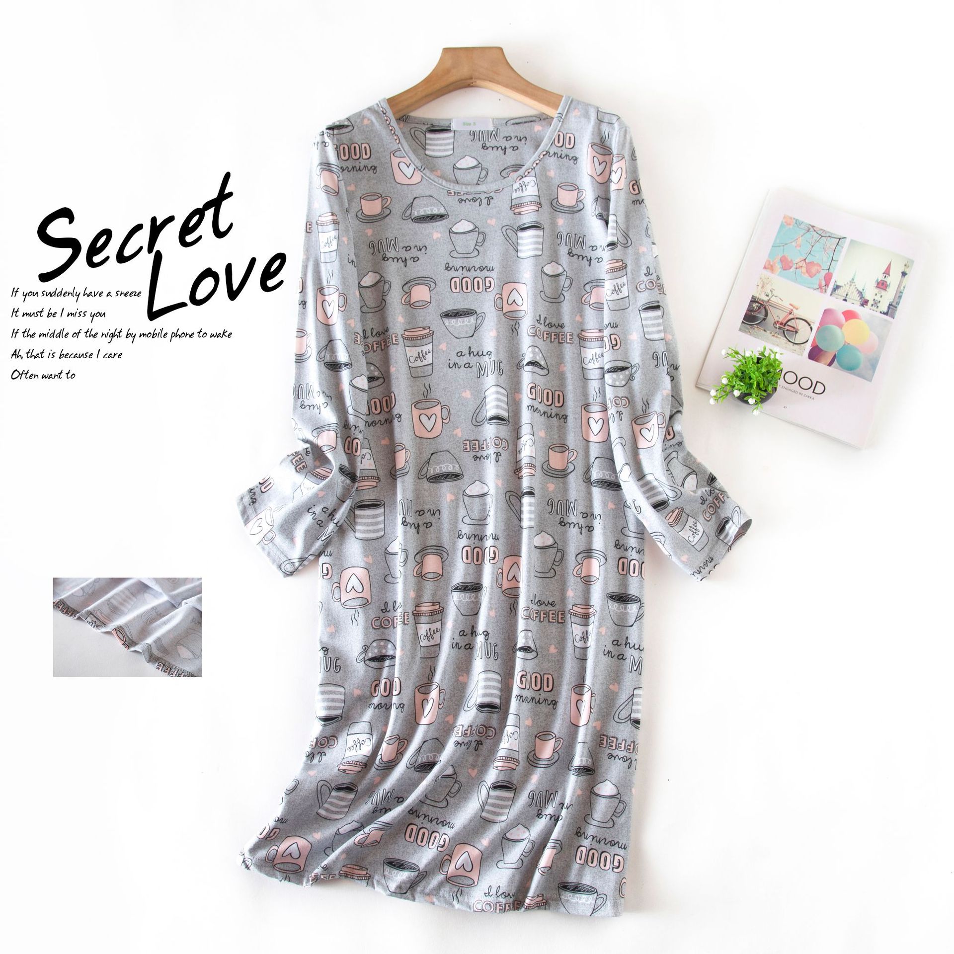 여름 긴팔 잠옷 여자의 플러스 사이즈 귀여운 만화 가정 옷 비료 니트 면 잠옷스토어 가기