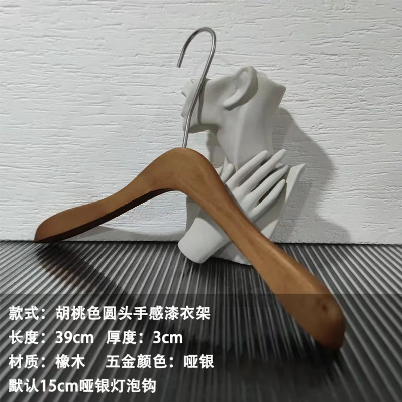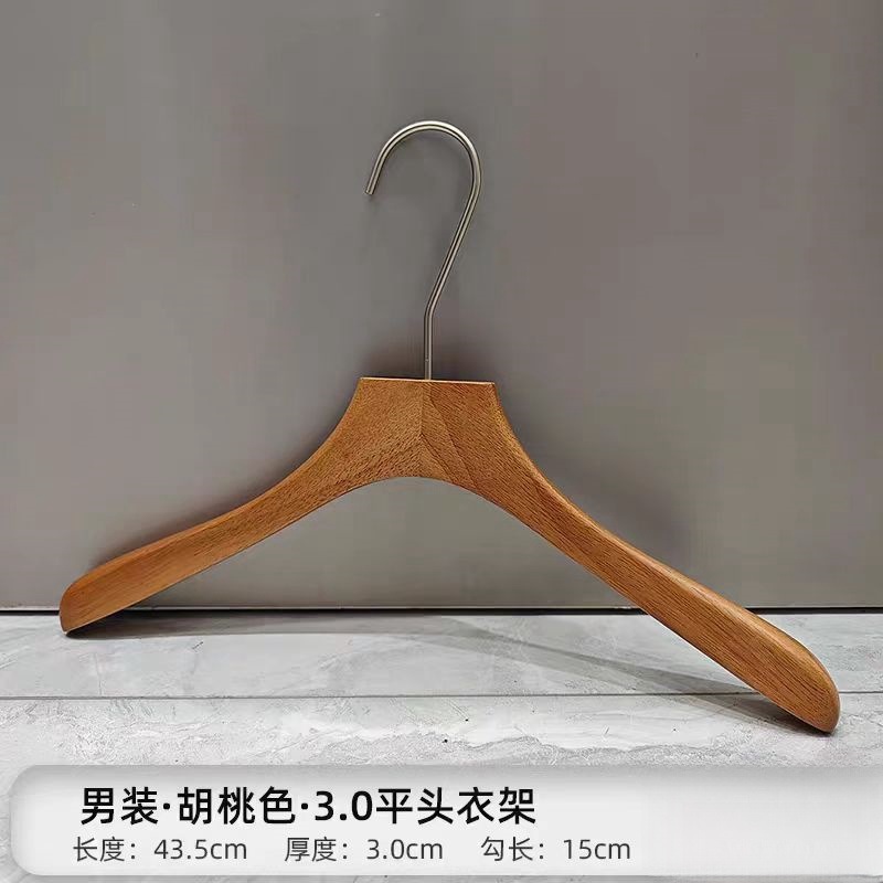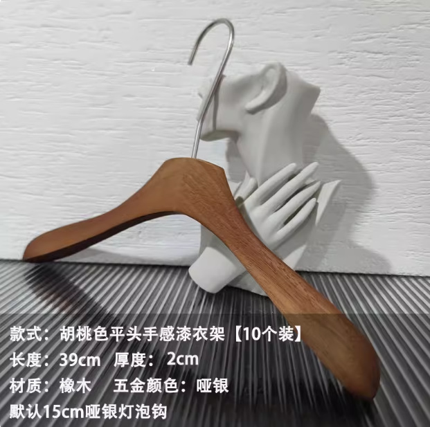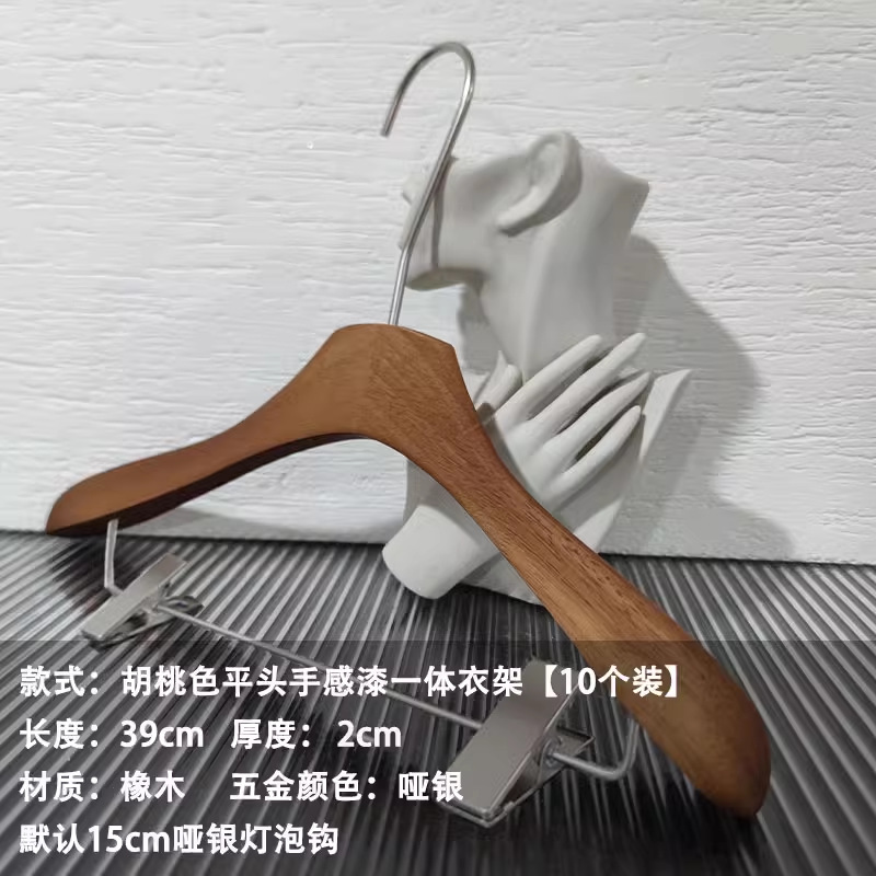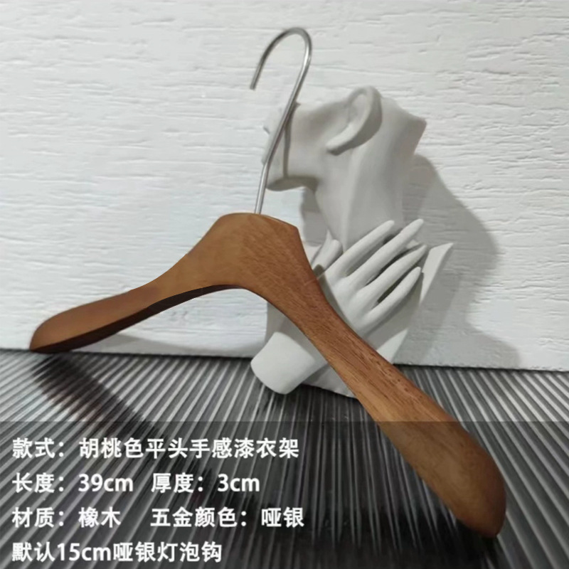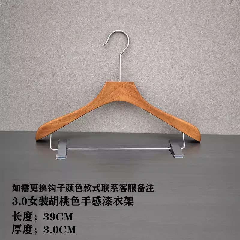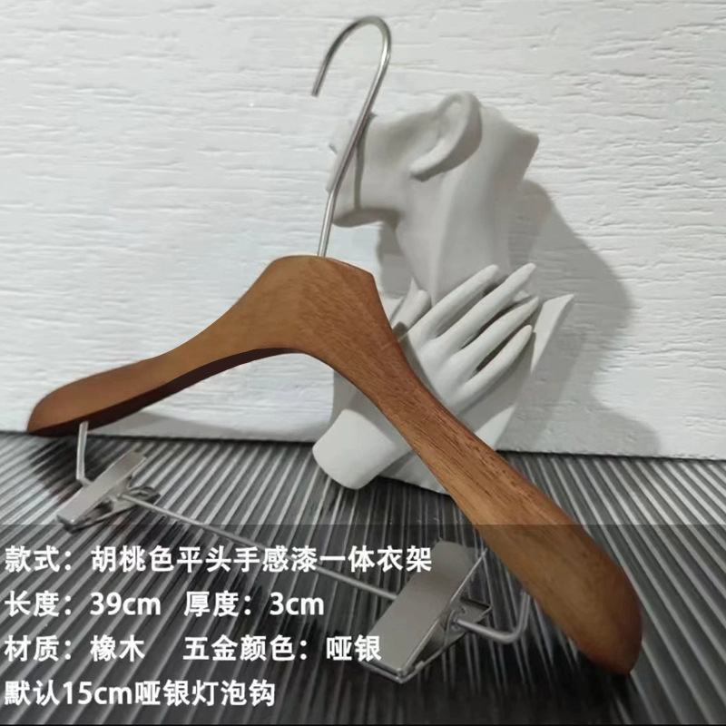 도매 고급 의류 매장용 원목 옷걸이, 두꺼운 무자국 미끄럼 방지 페인트, 호두색 오크 여성 의류 걸이