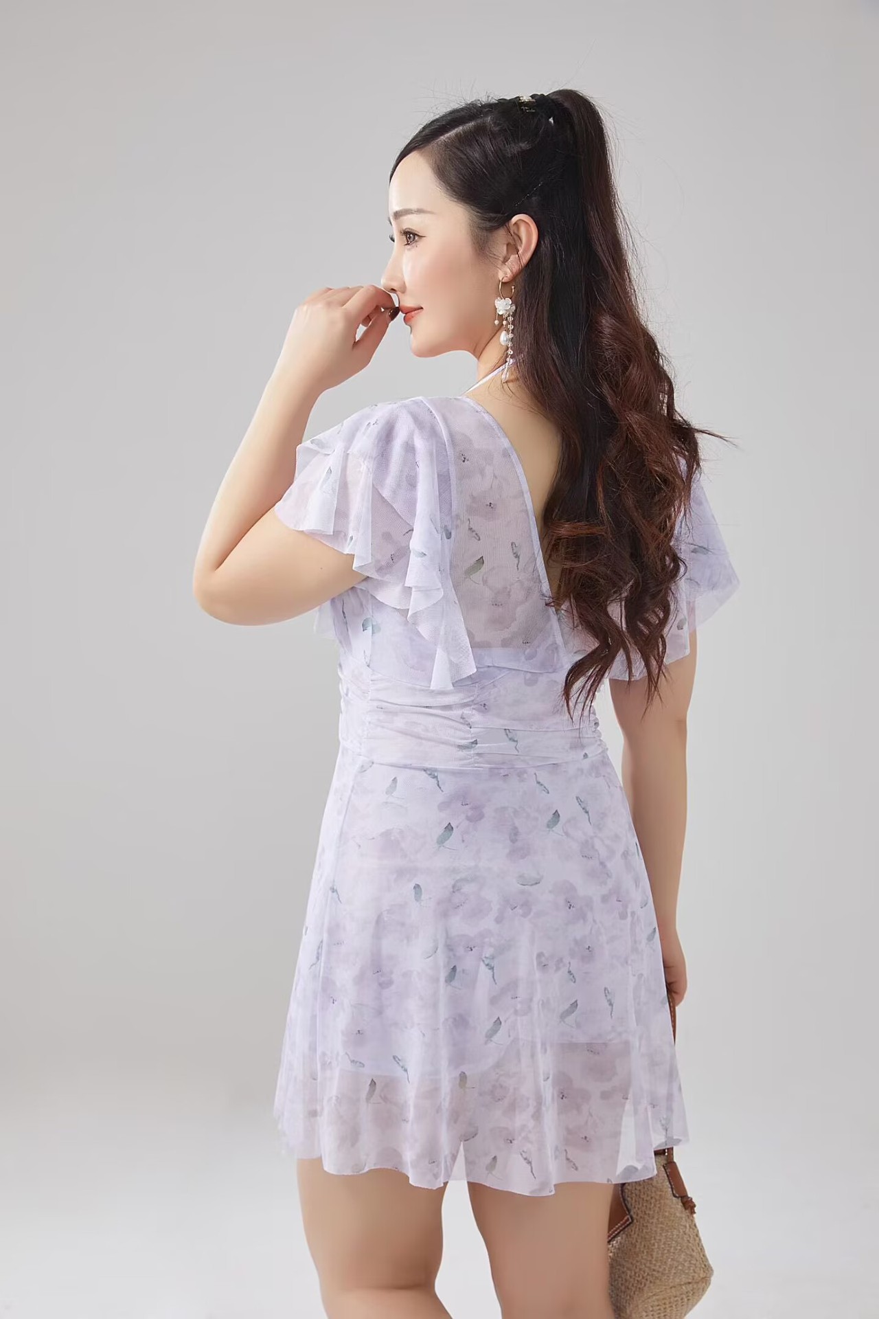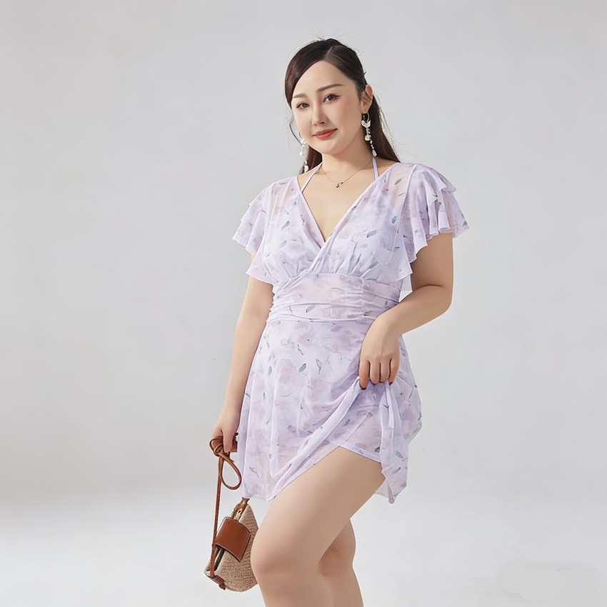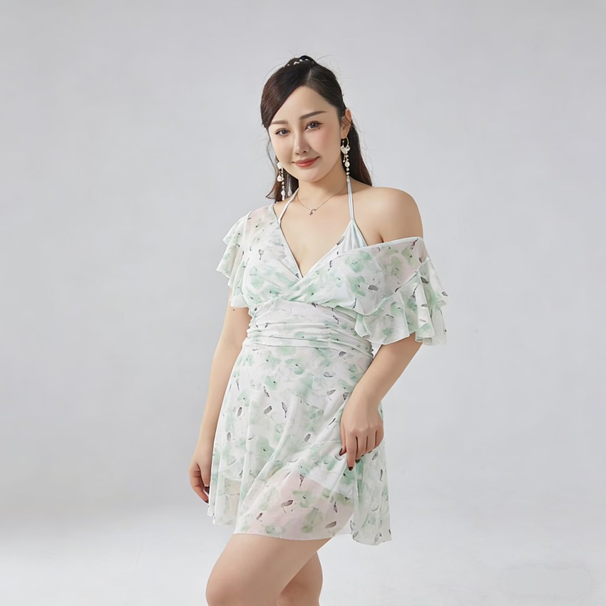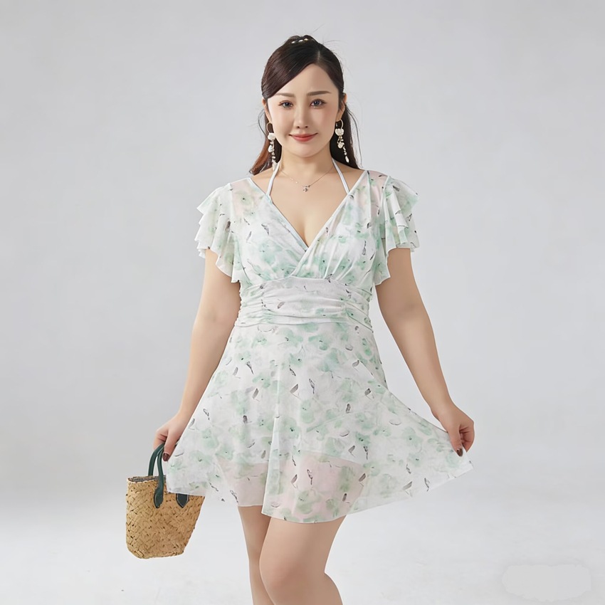 플러스 사이즈 수영복 여성의 슬림하고 약간 뚱뚱한 소녀 200kg 섹시한 고기 덮인 레이스 원피스 스커트 보수적 인 온천 수영복