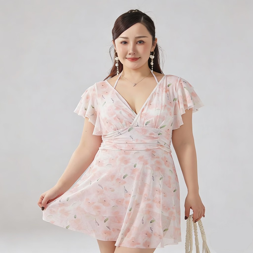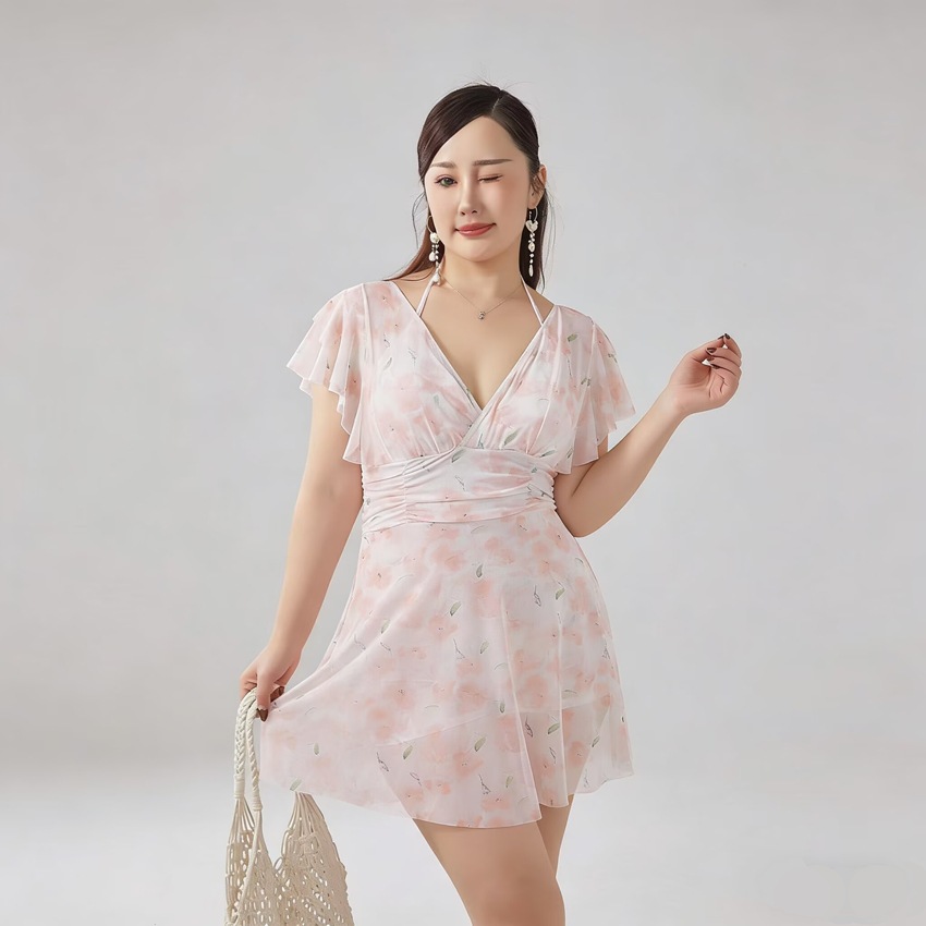 플러스 사이즈 수영복 여성의 슬림하고 약간 뚱뚱한 소녀 200kg 섹시한 고기 덮인 레이스 원피스 스커트 보수적 인 온천 수영복스토어 가기