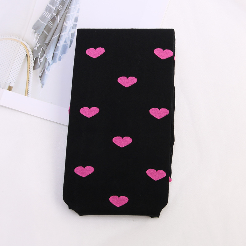 봄과 가을 JMY 일본 복숭아 심장 자카드베이스 양말 벨벳 컬러 사랑 자수 팬티 스타킹