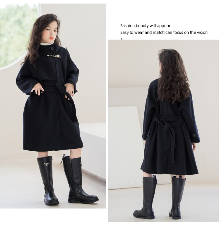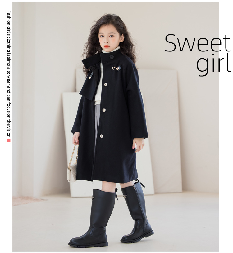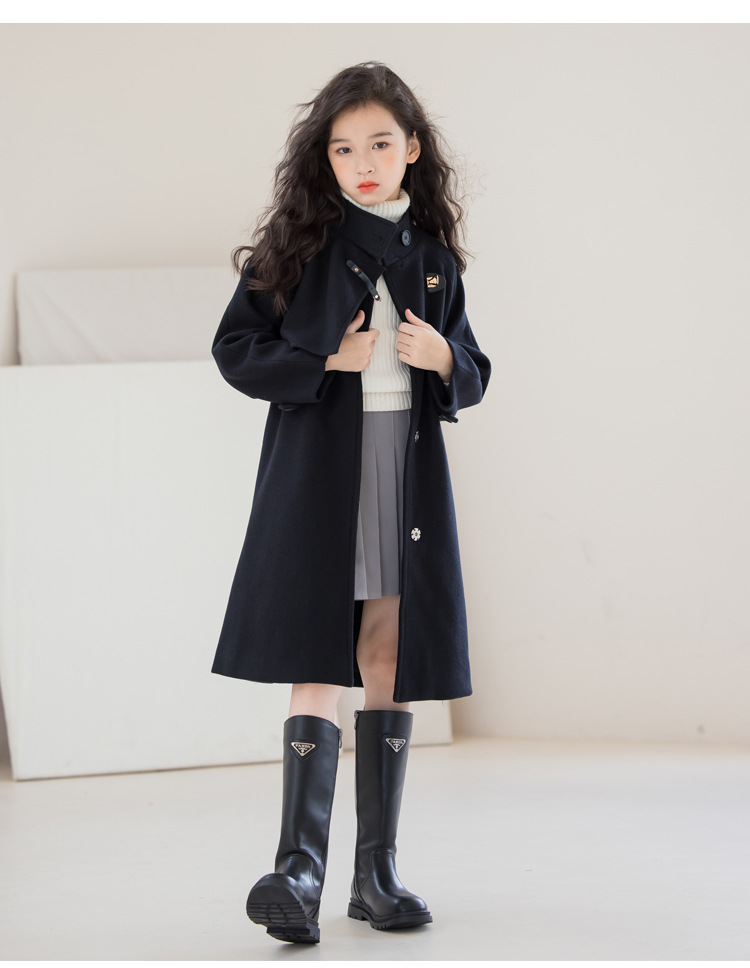 여아 모직 코트 2025 가을 겨울 부모-자식 의류 엄마와 딸 한국식 카디건 중간 길이 큰 어린이 여성 모직 코트스토어 가기