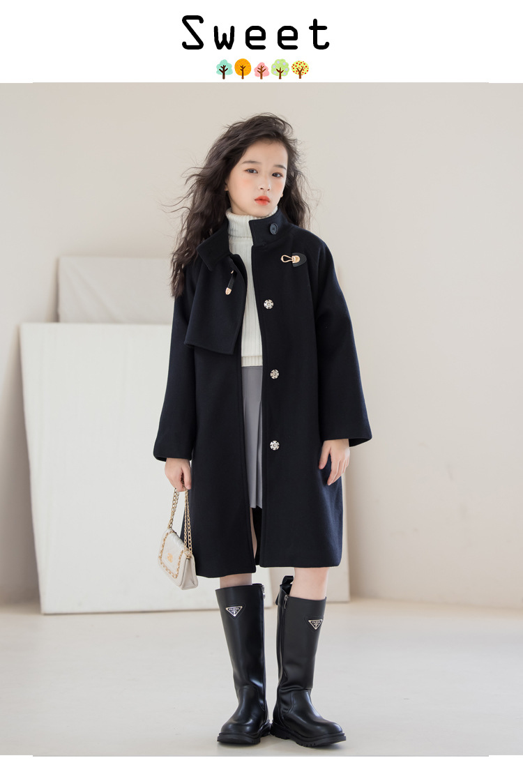 여아 모직 코트 2025 가을 겨울 부모-자식 의류 엄마와 딸 한국식 카디건 중간 길이 큰 어린이 여성 모직 코트
